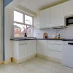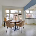 Eerste verdieping: overloop met wasruimte en opstelling cv ketel, separaat toilet, bergruimte en toegang tot de woonkamer. De woonkamer heeft een prachtig formaat en geeft veel lichtinval door de raampartij aan beide zijde. De woonkamer heeft een L-vorm met aansluitend open keuken aan de voorzijde. De hoek opgestelde keuken is voorzien van vaatwasser, oven en voldoende kastruimte. Aan de achterzijde is de schuifpui zo gesitueerd dat het doorloopt in het royale dakterras, gelegen op het noordoosten. Door de grootte van het dakterras is op elk moment van de dag wel een plek in de zon te vinden. De kozijnen zijn van kunststof met dubbele beglazing.