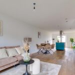 Begane Grond; Entree komt uit bij de eetkamer binnen de doorzon living van ruim 11 meter lengte. Open keuken met kookeiland en voorzien van diverse inbouwapparatuur. Openslaande deuren naar de voortuin welke voorzien is van een terras en ludieke traptredes.