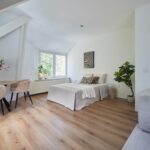 Op de bovenste verdieping gelegen zeer charmante studio appartement van 33,3m² met volledig zelfstandige woonruimte en uitkijk op de bomengrens van de groene Heuvellaan. De hanenbalken en de hoekligging met dakkapellen maken dit een gezellige plek met veel karakter.