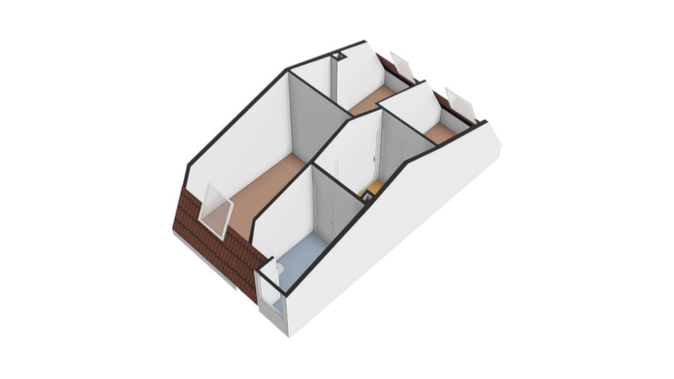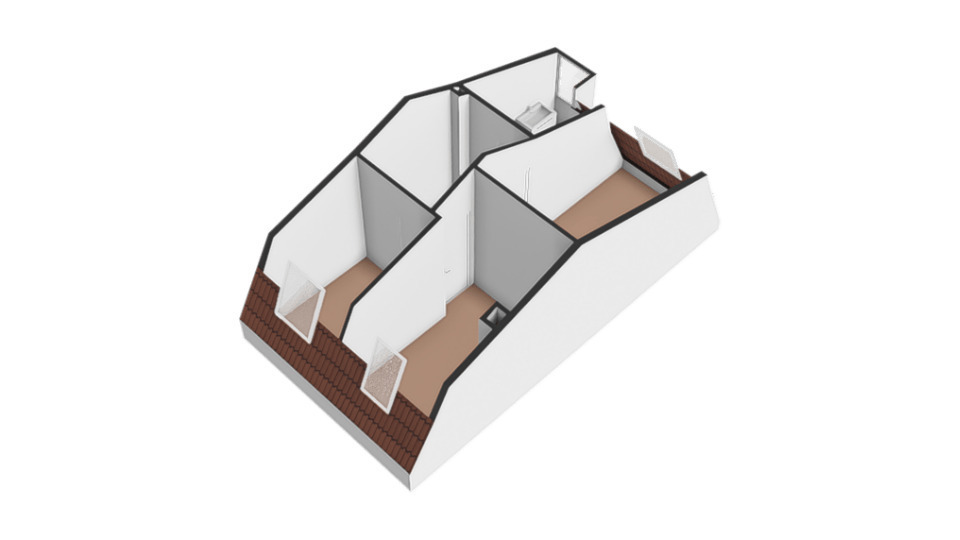 Eerste Verdieping; Overloop met toegang tot alle vertrekken, waaronder drie slaapkamers met een royaal dakraam en een badkamer. De badkamer beschikt over een tweede toilet, een douche en een wastafelmeubel.