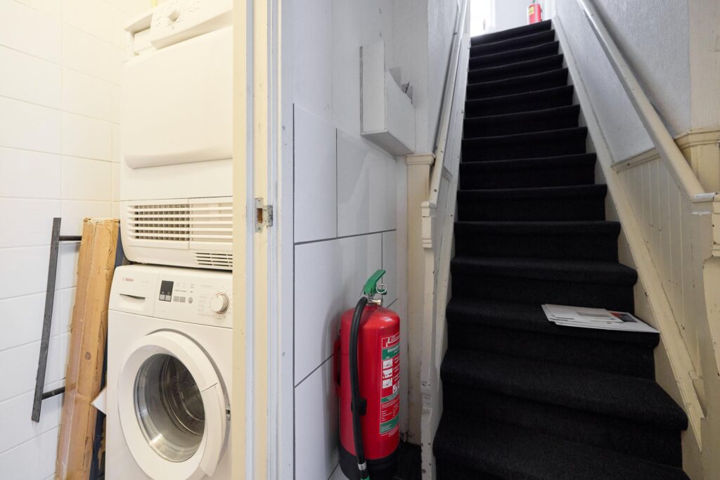 • Gezamenlijke wasruimte met een wasmachine en droger
