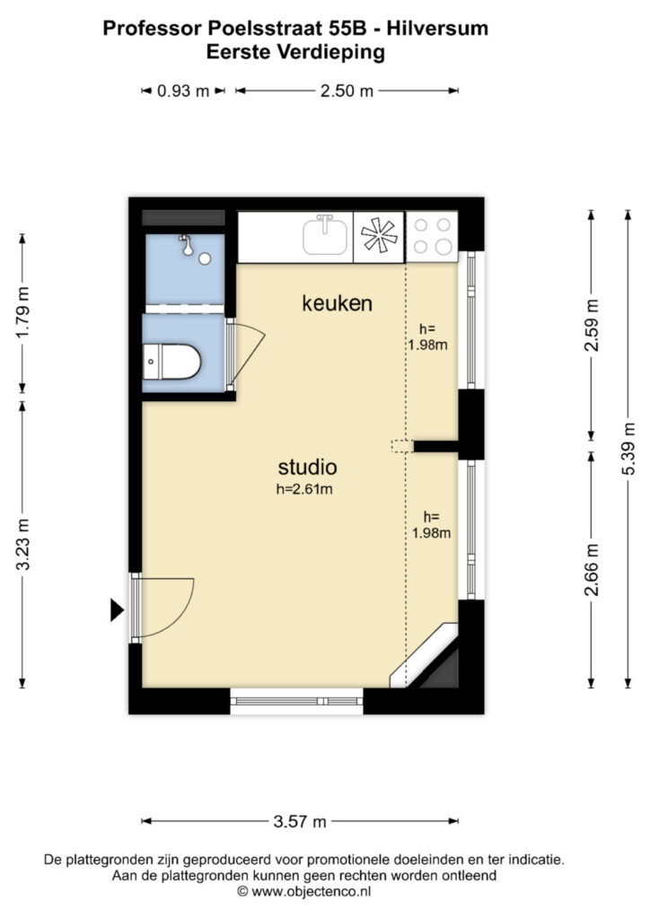 De woning is praktisch opgezet en biedt alles wat je nodig hebt binnen handbereik. Dankzij de prettige lichtinval en slimme indeling voelt de studio verrassend ruim aan. De open keuken is gesitueerd langs de wand en voorzien van de benodigde aansluitingen en werkruimte. De badkamer beschikt over een douche en toilet.