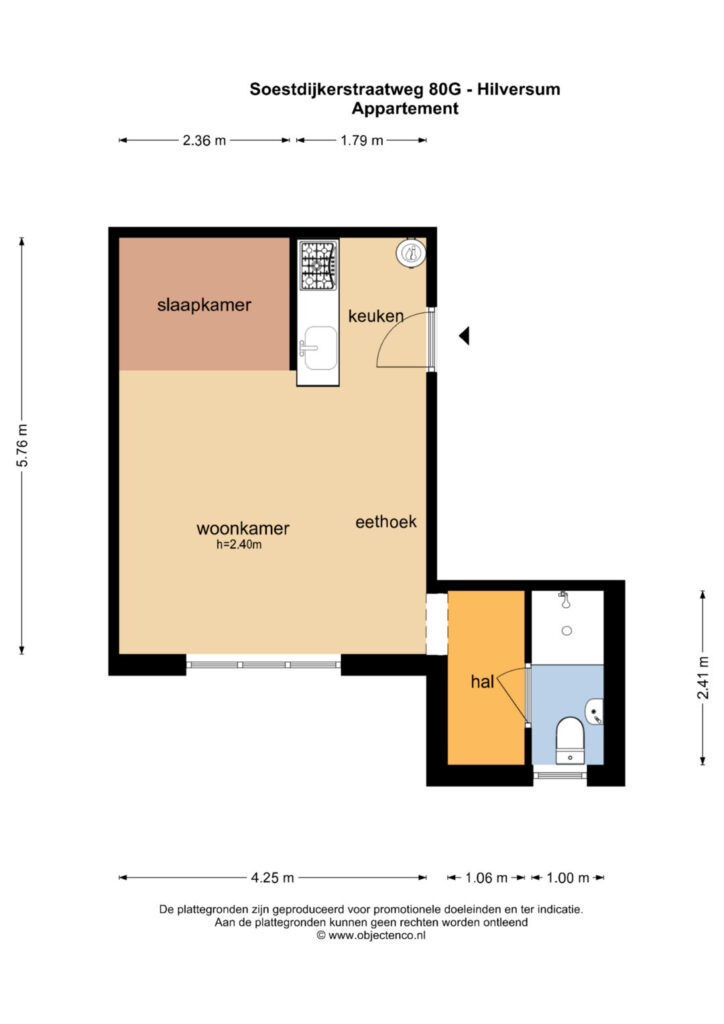 Eerste Verdieping: Entree, keukengedeelte met een open keuken en diverse apparatuur, living welke opgedeeld kan worden in een woonkamer en een slaapgedeelte. De badkamer is voorzien van een toilet, een douche en een wastafelmeubel.