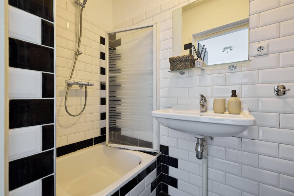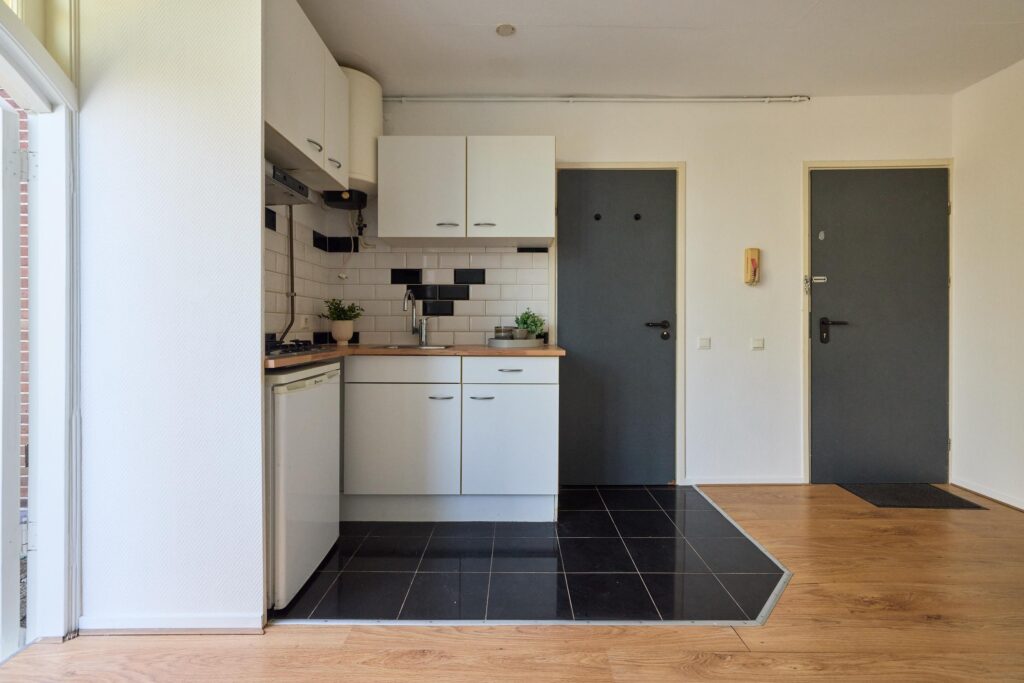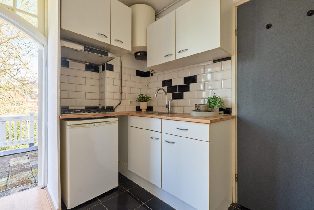 De compacte keuken is praktisch ingericht en voorzien van diverse apparatuur. Daarnaast beschikt de woning over een nette badkamer met douche, wastafel en toilet.