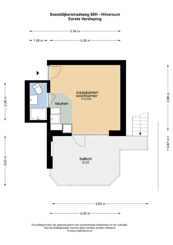 Op zoek naar een compacte en sfeervolle studio met buitenruimte én parkeerplek? Dan is deze woning aan de Soestdijkerstraatweg precies wat je zoekt. Deze studio van ca. 20 m² beschikt over een ruim balkon van ca. 14 m², een lichte woon-/slaapruimte met openslaande deuren en een eigen parkeerplaats op het terrein.