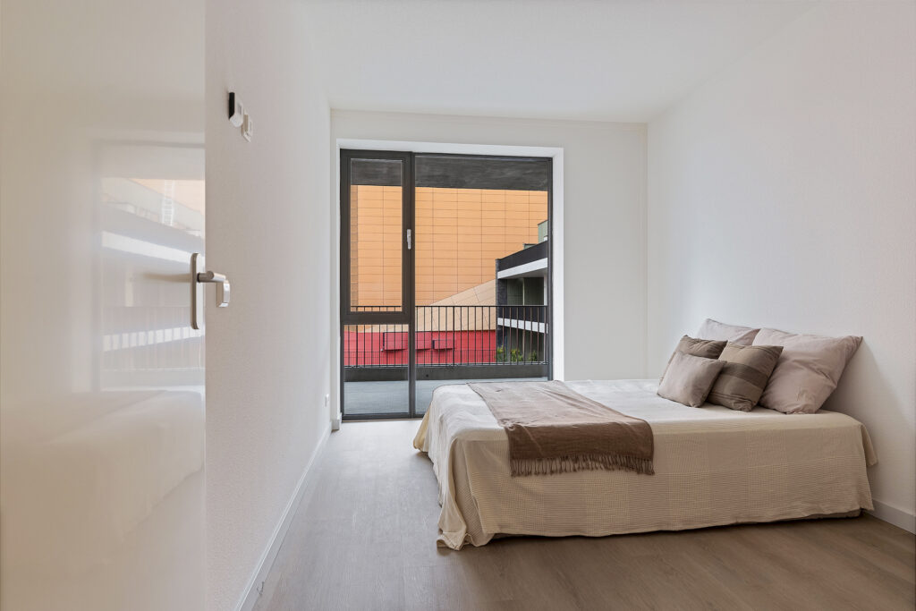 Het appartement beschikt over twee slaapkamers. De badkamer is voorzien van een douche en wastafel.