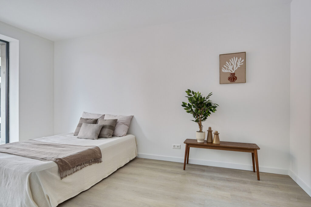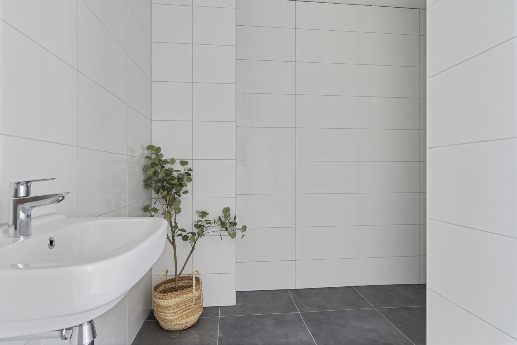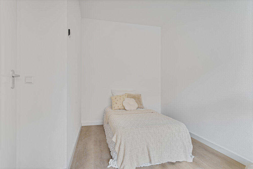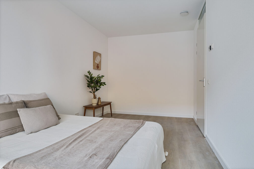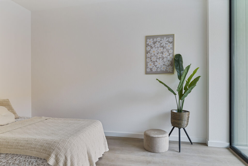 – Gespoten wanden en pvc-vloer met vloerverwarming