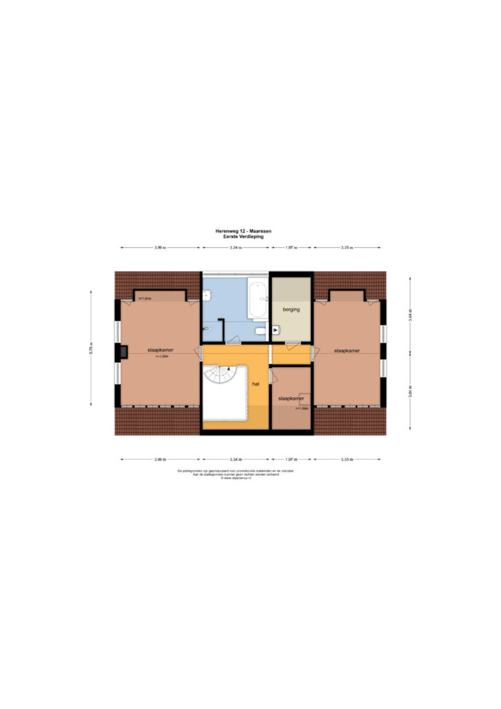 Eerste Verdieping; De draaitrap komt uit in de hal met toegang tot alle vertrekken, waaronder drie slaapkamers, een ruime berging met ruimte voor de c.v. opstelling en een badkamer. Deze badkamer is voorzien van een toilet, een inloopdouche, een ligbad en een wastafel.