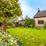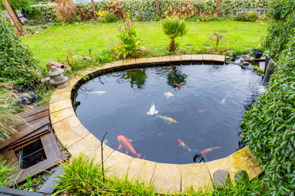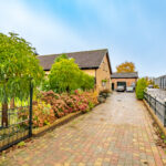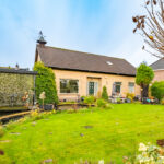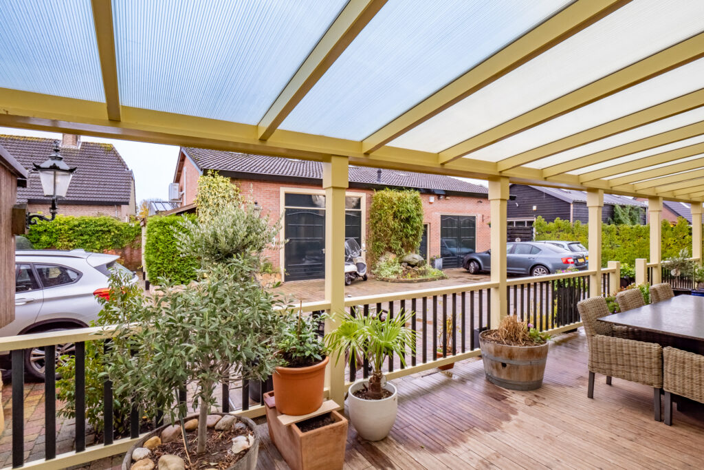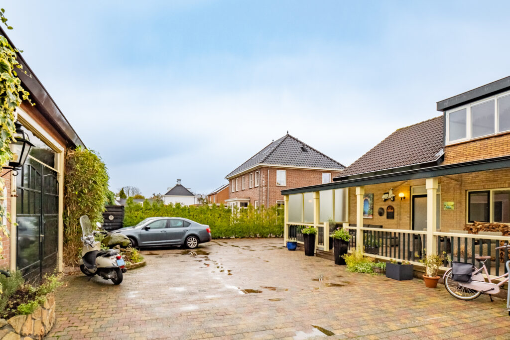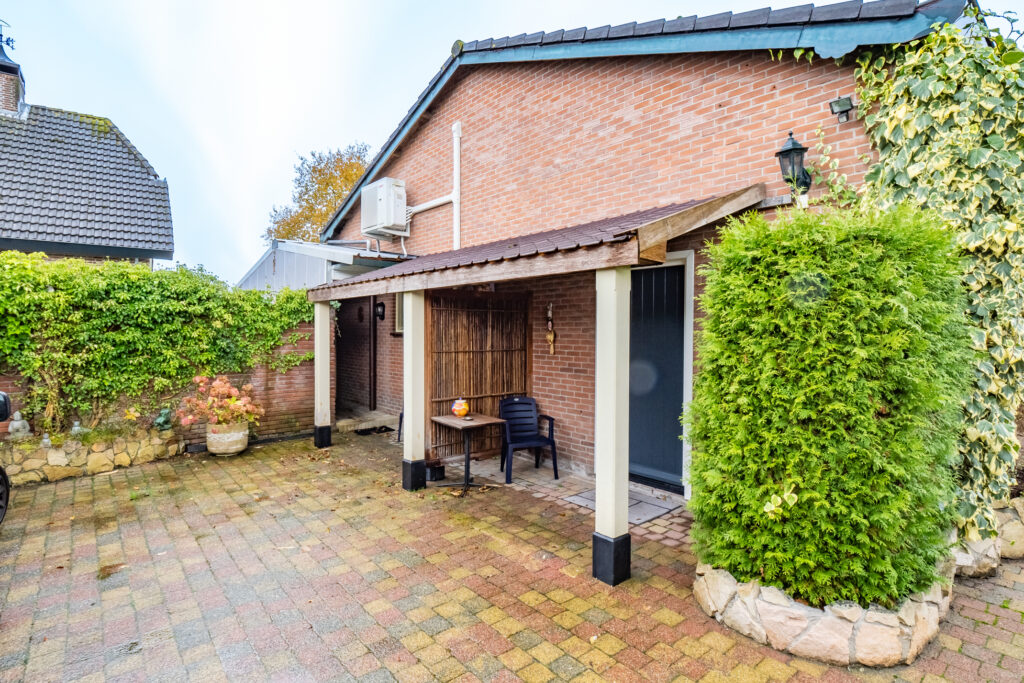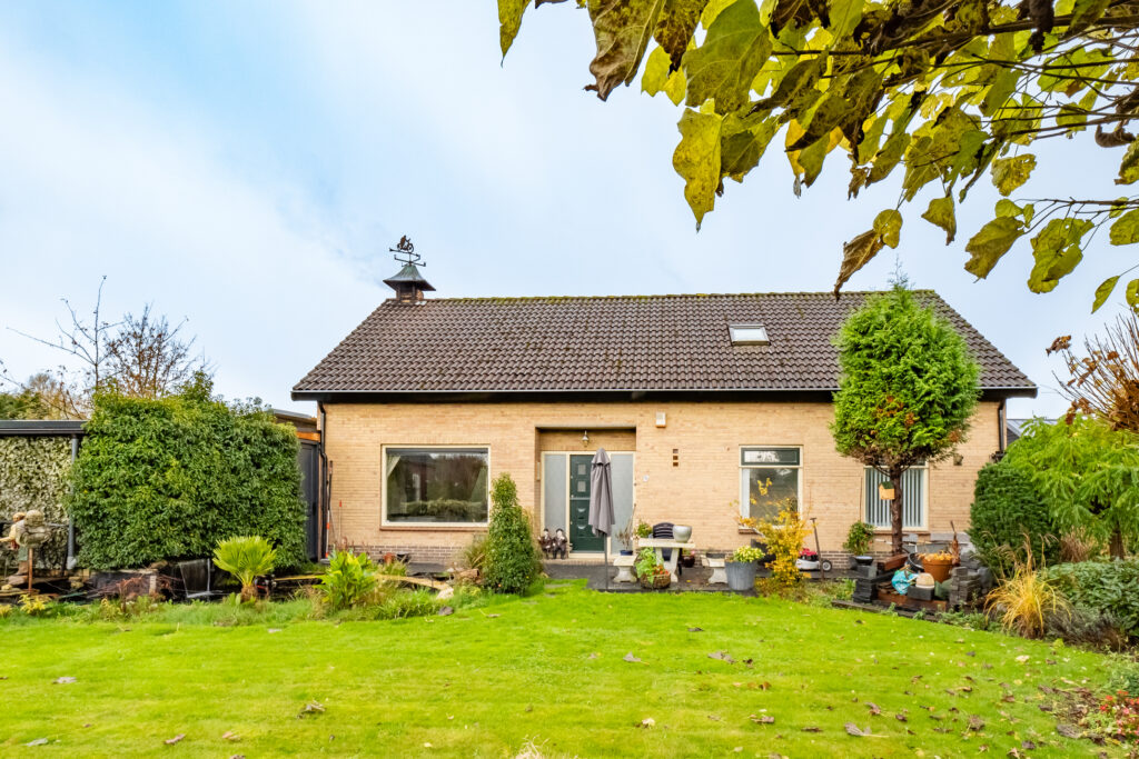 Tuin; De tuin is gelegen rondom het woonhuis en is daar voorzien van graszoden. Het overkapte terras en de oprit zijn voorzien van volledige bestrating welke doorloopt tot het bijgebouw. De voortuin beschikt over een plantsoen met beplanting en een visvijver met een brug.
