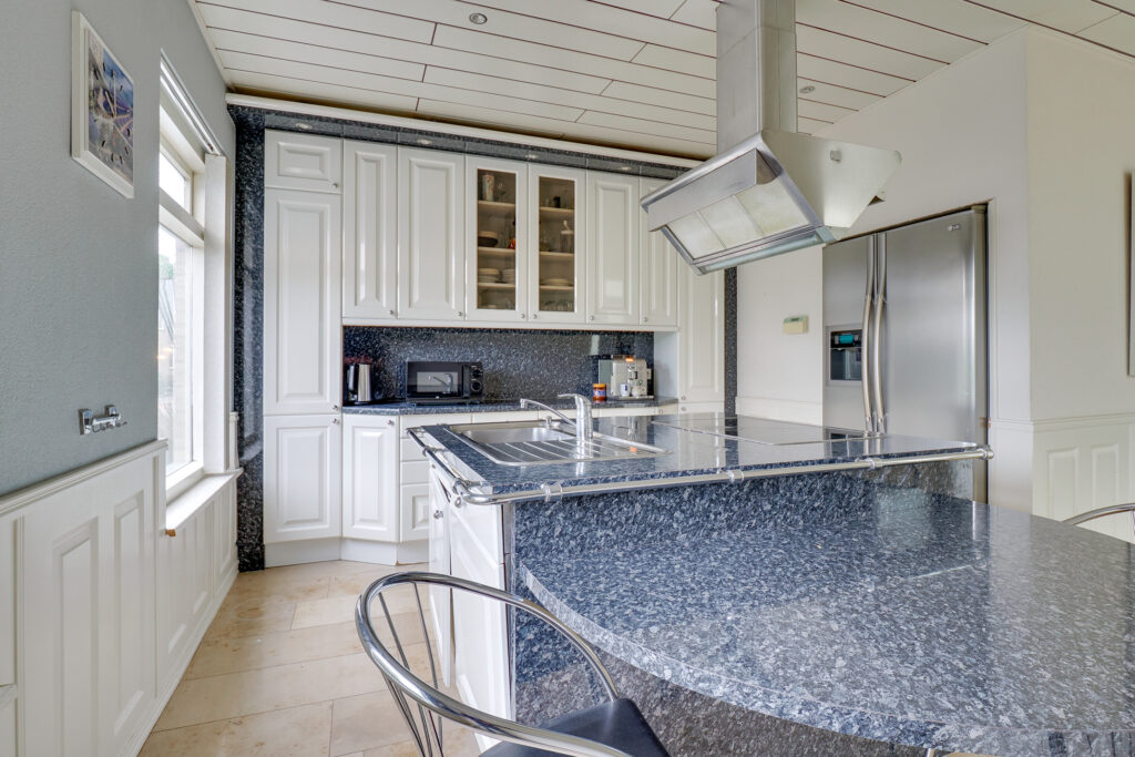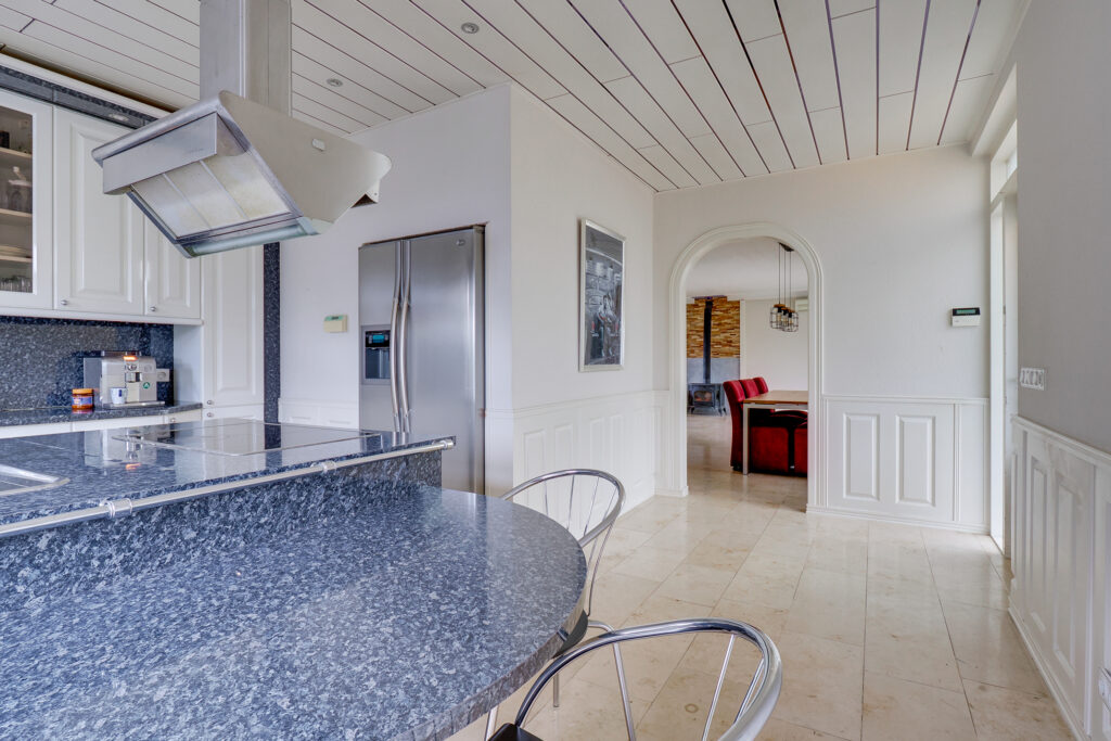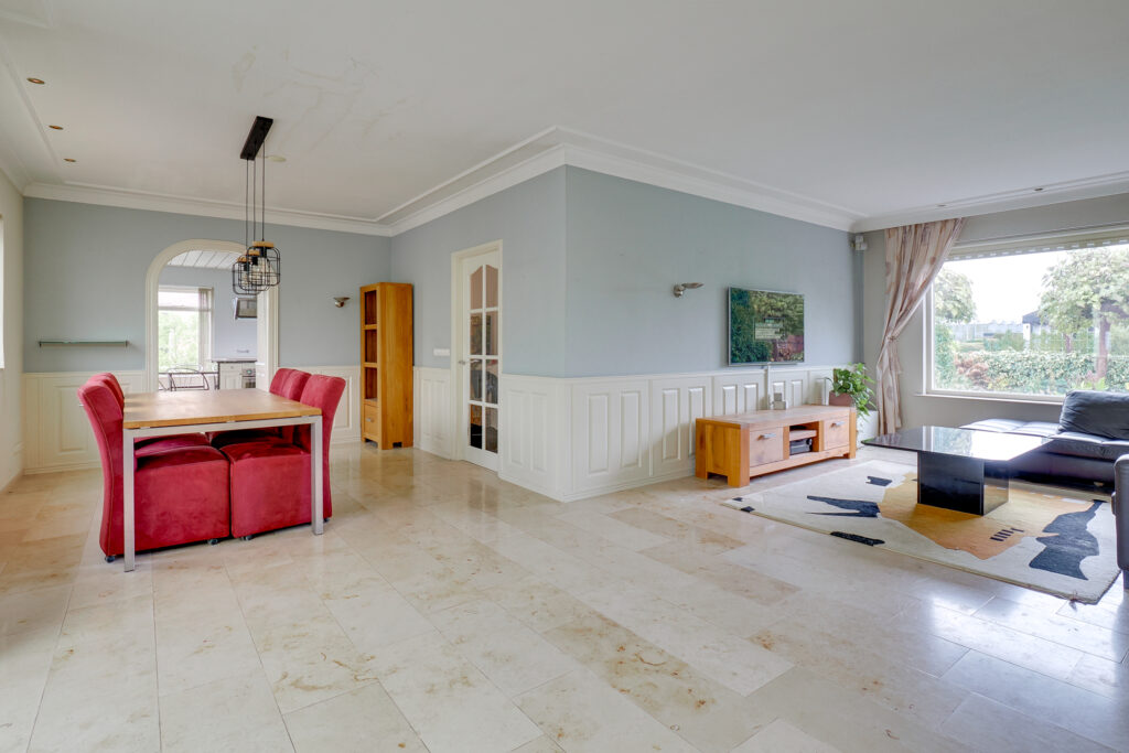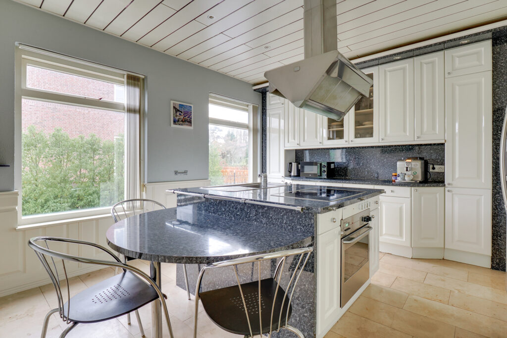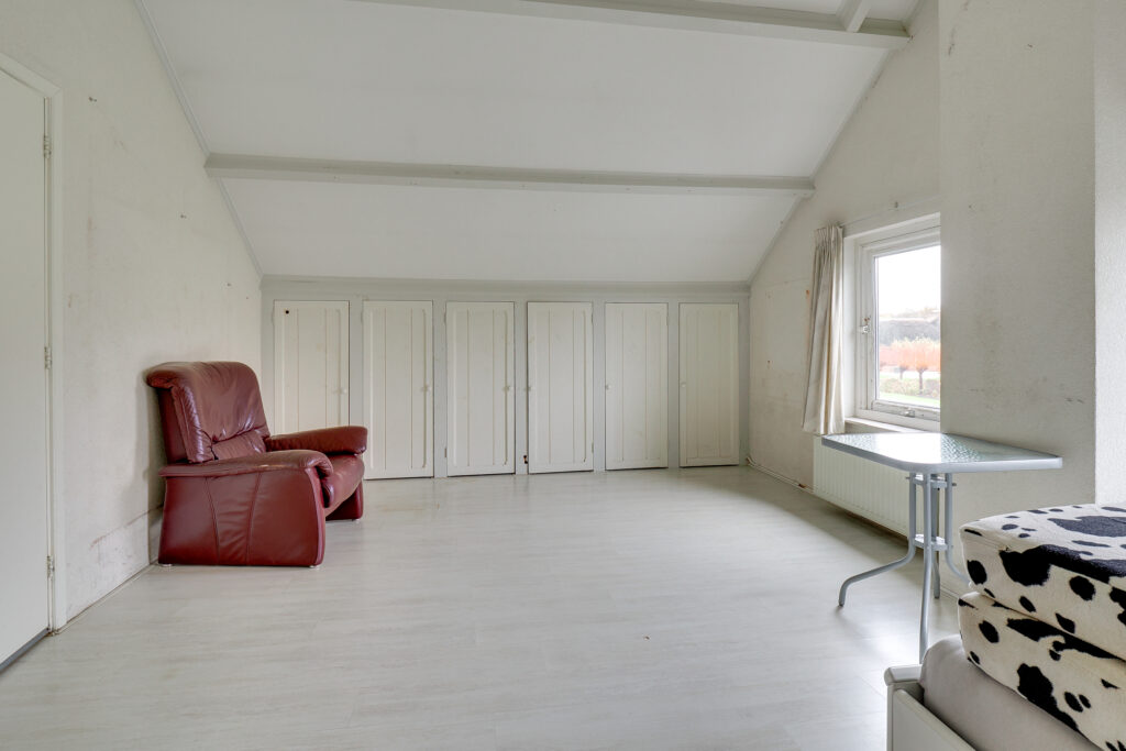 Begane Grond; Entree, hal met draaitrap, meterkast, inbouwkast en een afgesloten berging met wasmachine-aansluiting. Vanuit de hal is er toegang tot de slaapkamer en de doorzon woonkamer met een sfeervolle houtkachel en toegang tot het overkapte terras. De woonkamer is gesitueerd in een L-vorm en heeft een open doorgang naar de keuken. Deze keuken biedt tevens toegang tot het terras en beschikt over o.a. een kook/spoel-eiland en is voorzien van diverse inbouwapparatuur. Vanuit het terras is er middels twee openslaande deuren toegang tot de ruimte met het binnenzwembad. Het zwembad heeft nog een directe toegang aan de voorzijde en een derde toegang aan de achterzijde. Hier ligt een tweede keuken welke voorzien is van apparatuur. Een separaat toilet met fontein en een afgesloten berging zijn ook gelegen aan de achterzijde. Aan de voorzijde, naast de directe toegang tot het zwembad is een afgesloten berging aanwezig.