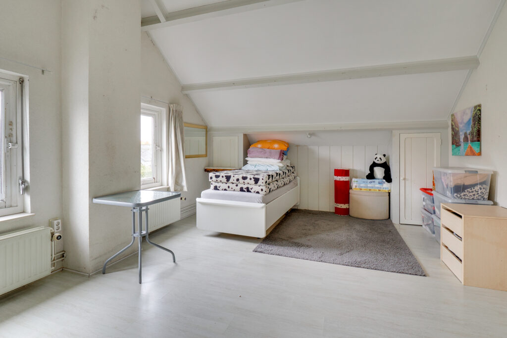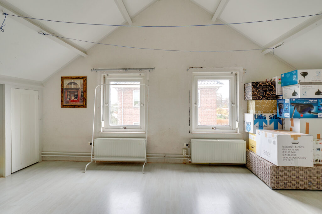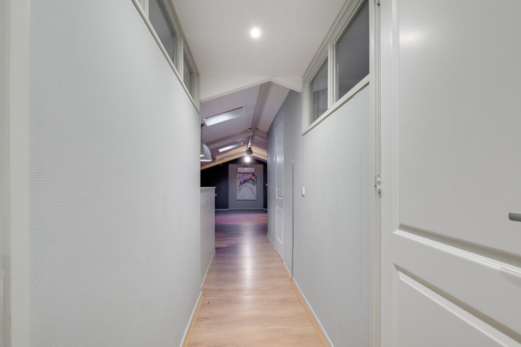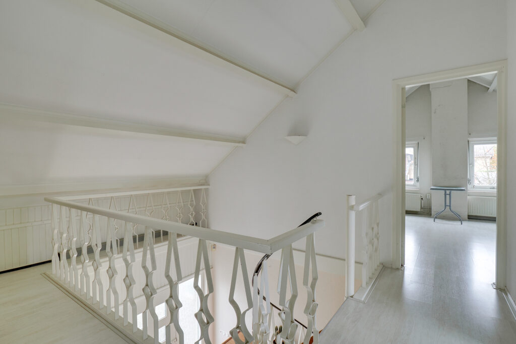Eerste Verdieping; De draaitrap komt uit in de hal met toegang tot alle vertrekken, waaronder drie slaapkamers, een ruime berging met ruimte voor de c.v. opstelling en een badkamer. Deze badkamer is voorzien van een toilet, een inloopdouche, een ligbad en een wastafel.