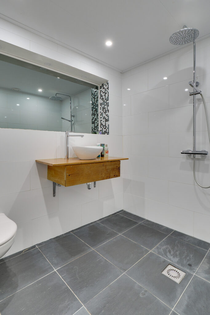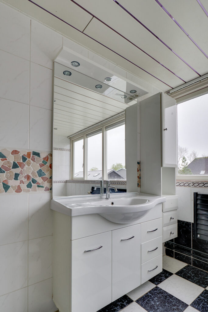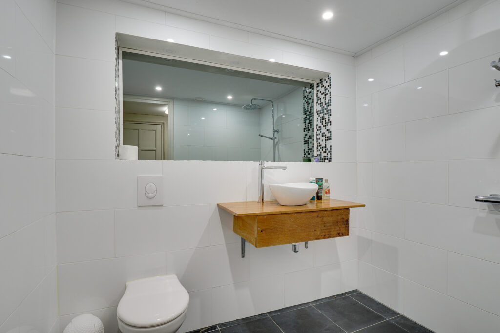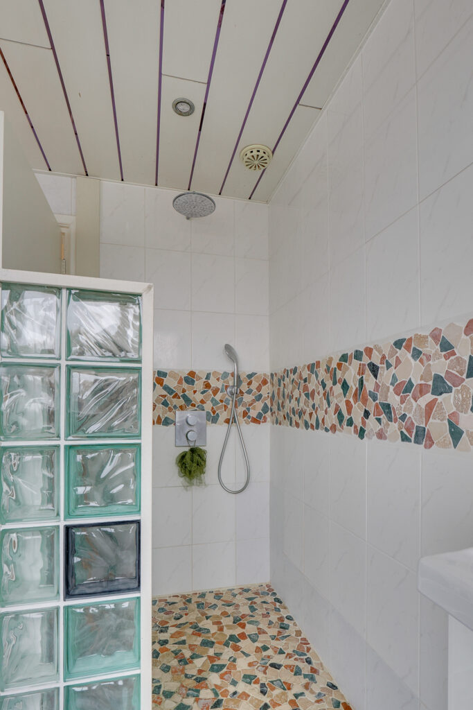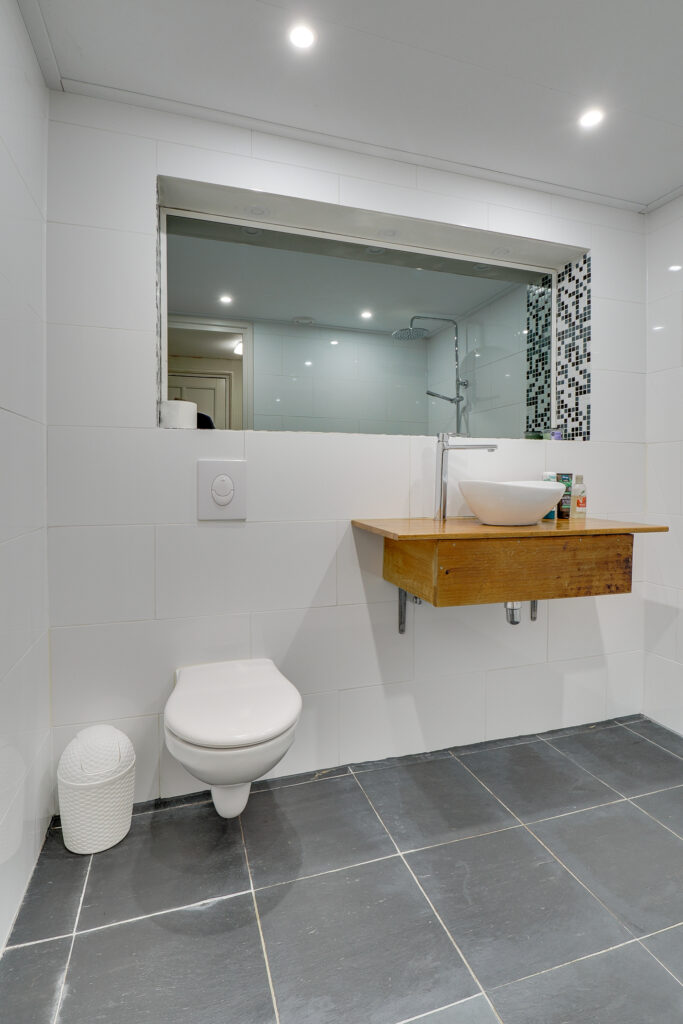 Eerste Verdieping; De draaitrap komt uit in de hal met toegang tot alle vertrekken, waaronder drie slaapkamers, een ruime berging met ruimte voor de c.v. opstelling en een badkamer. Deze badkamer is voorzien van een toilet, een inloopdouche, een ligbad en een wastafel.