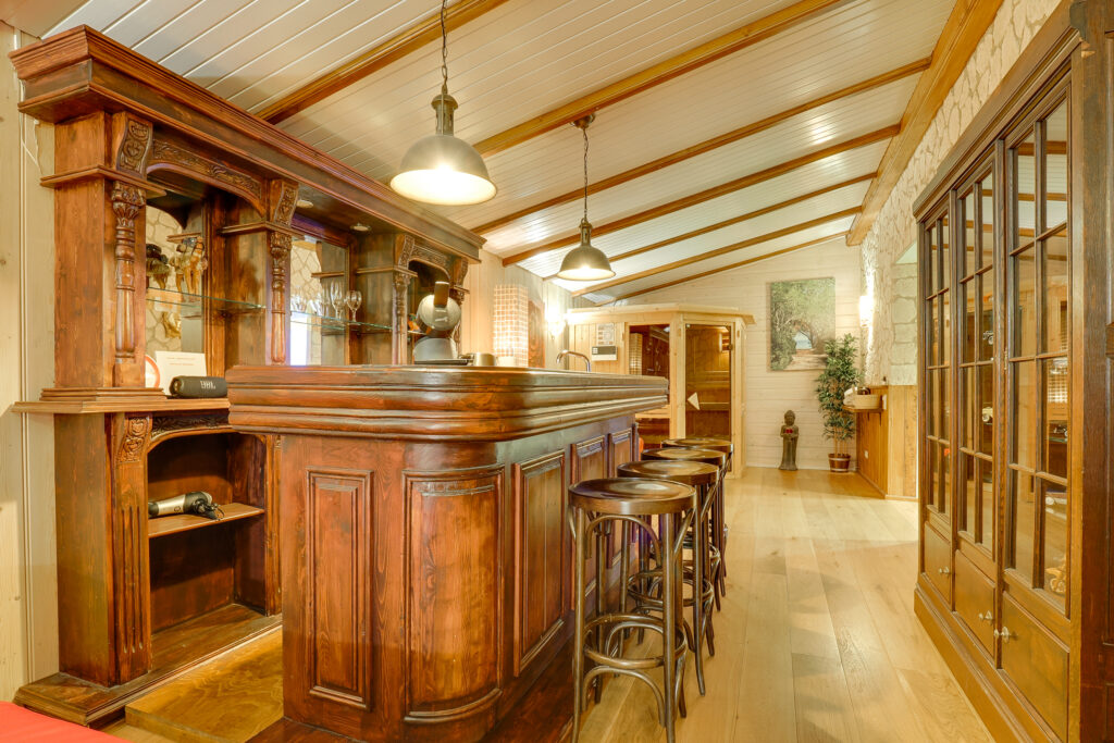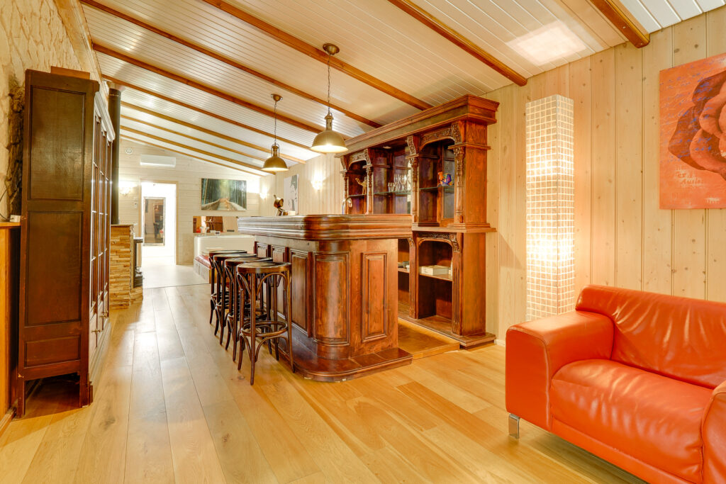 • Prachtige barok klassiek houten bargelegenheid en pooltafel in dezelfde stijl