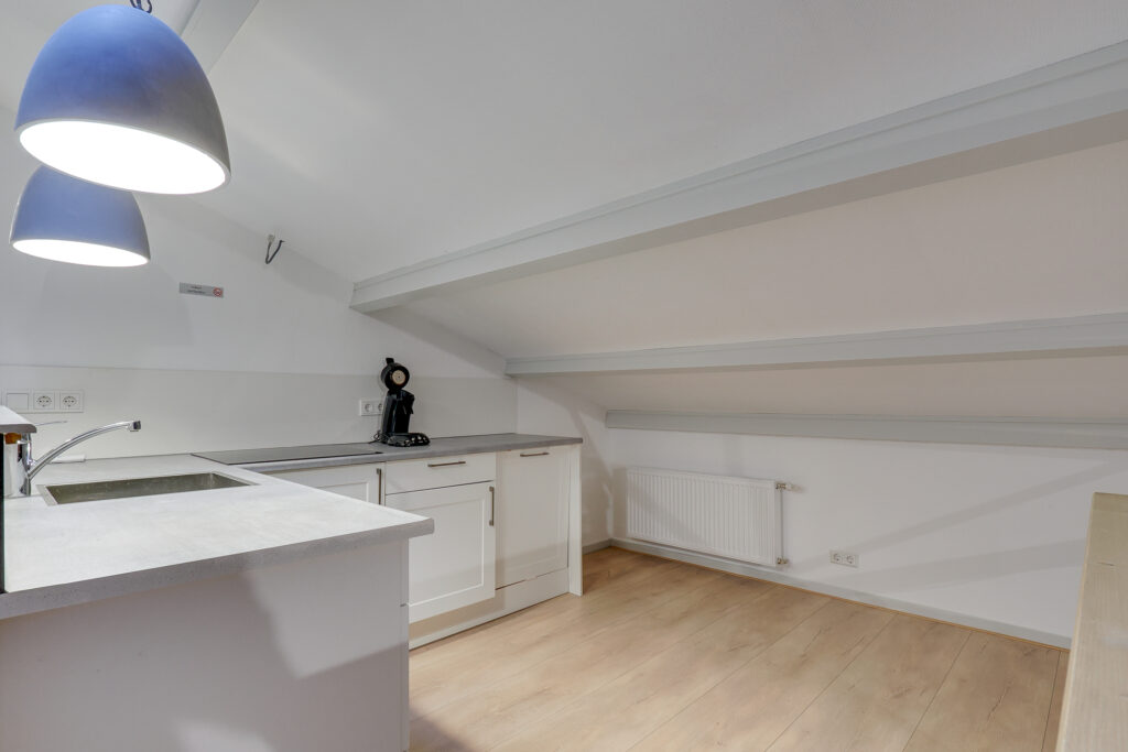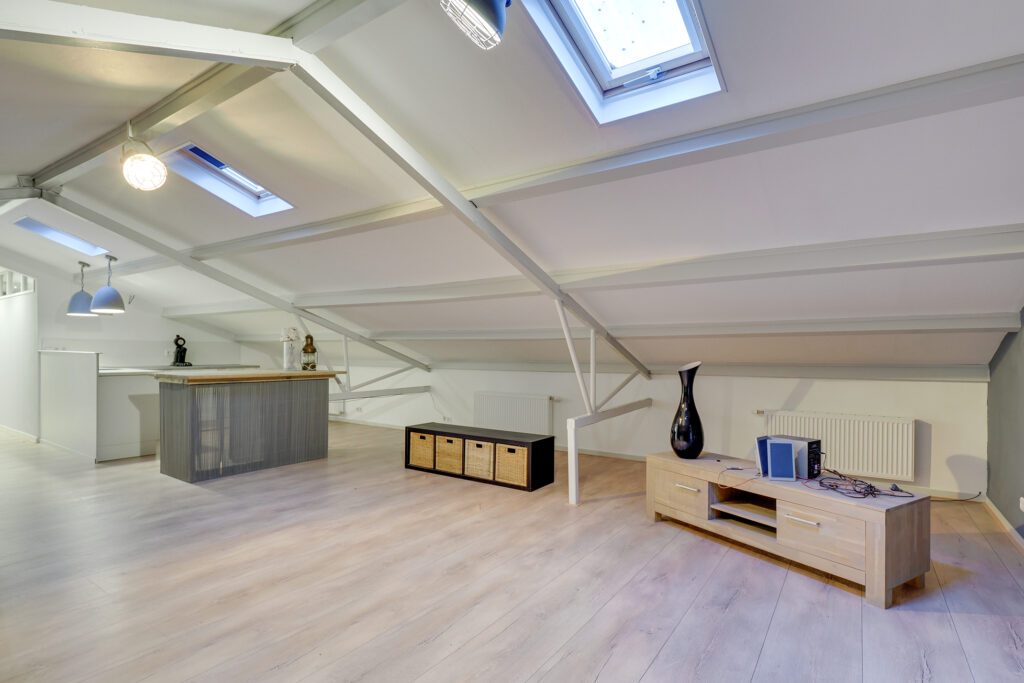 Eerste Verdieping; Deze verdieping heeft een eigen toegang en beslaat een volledig zelfstandig appartement met twee slaapkamers, een badkamer welke voorzien is van een douche, toilet en wastafel. De royale living beschikt over een open keuken welke gesitueerd is in een hoekopstelling en een eiland.