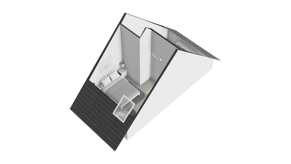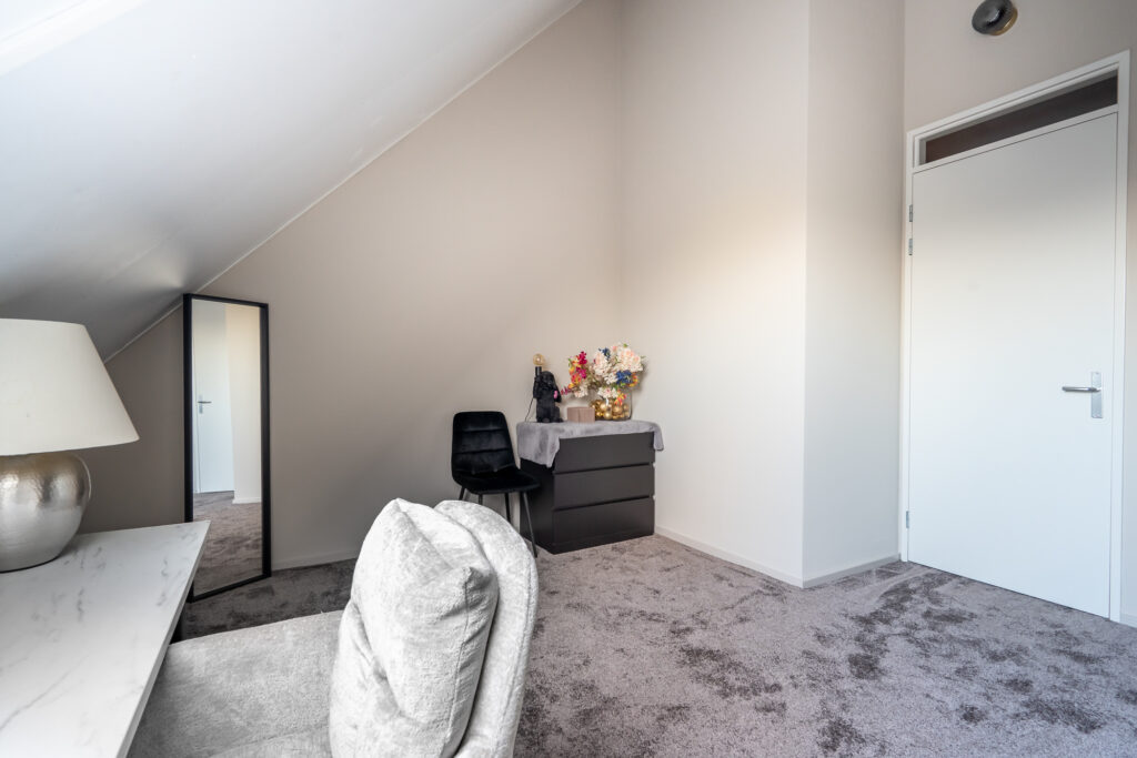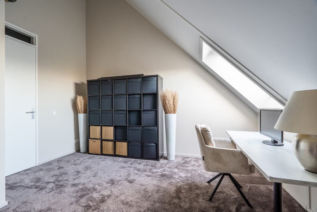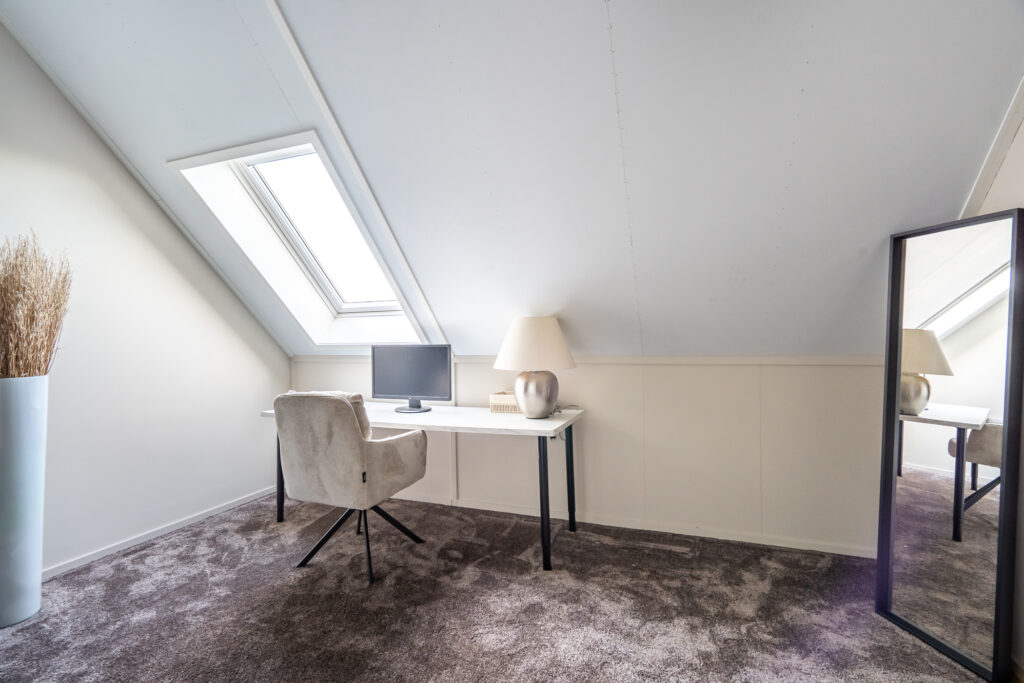 Royale overloop met ruimte voor de voorzieningen-installaties en toegang tot de derde slaapkamer welke voorzien is van een dakraam.