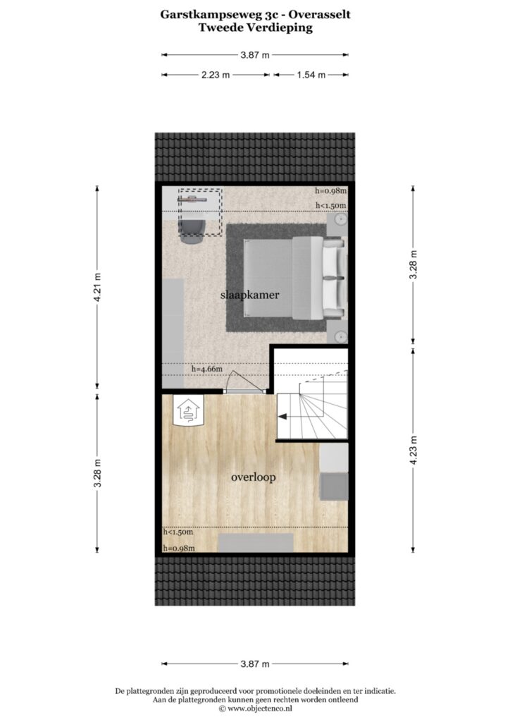 Tevens bevindt zich onder het dak nog een vliering voor opslag.