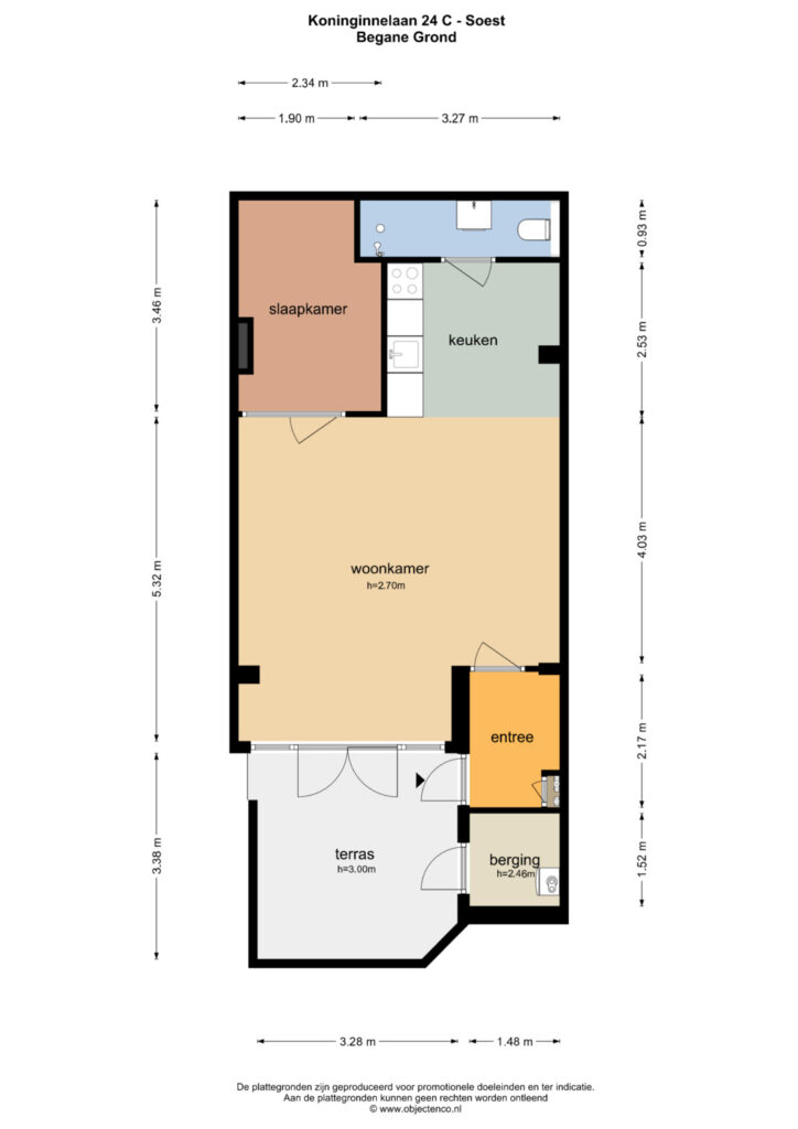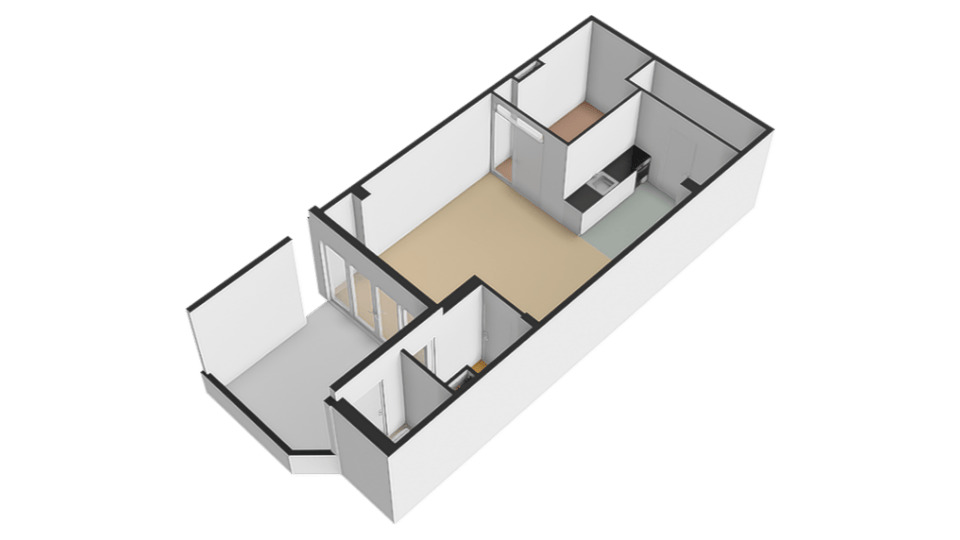 Via de entree komt u binnen in de hal, welke toegang biedt tot de verschillende vertrekken van de woning. De woonkamer is licht en ruim genoeg voor een comfortabele zithoek en eethoek en vormt het centrale punt van het appartement. De keuken is eenvoudig uitgevoerd en praktisch ingericht, met de nodige basisvoorzieningen voor dagelijks gebruik.
