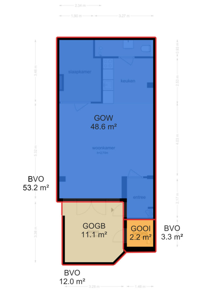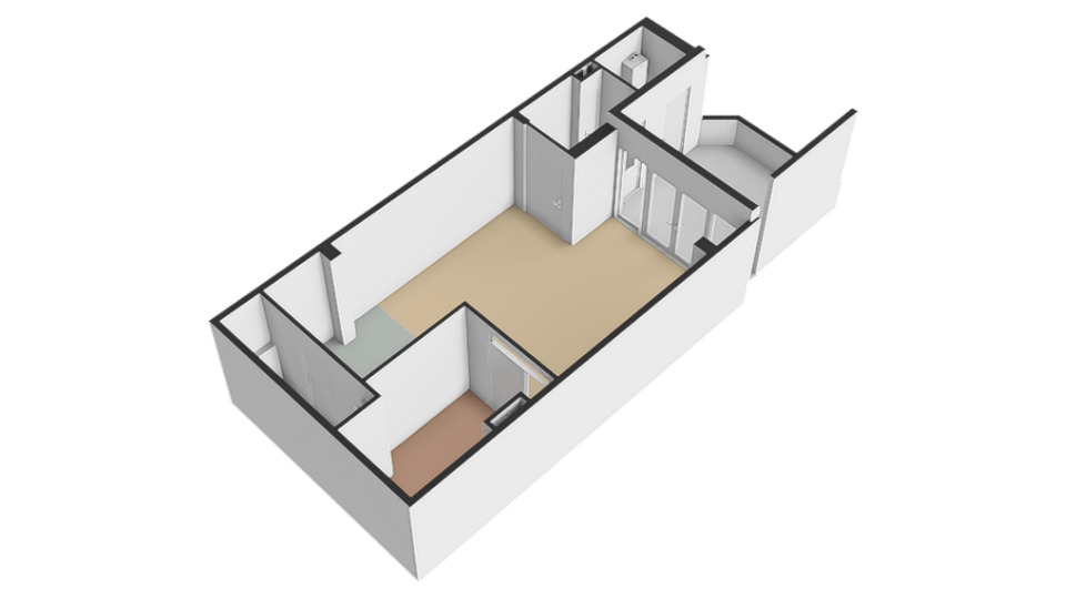 De slaapkamer is goed bemeten en biedt voldoende ruimte voor een bed en kastruimte. De badkamer is functioneel en voorzien van een douche, toilet en wastafel. Tevens is er een separate bergruimte aanwezig, ideaal voor opslag of het plaatsen van een wasmachine.