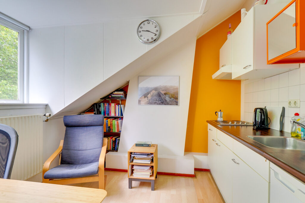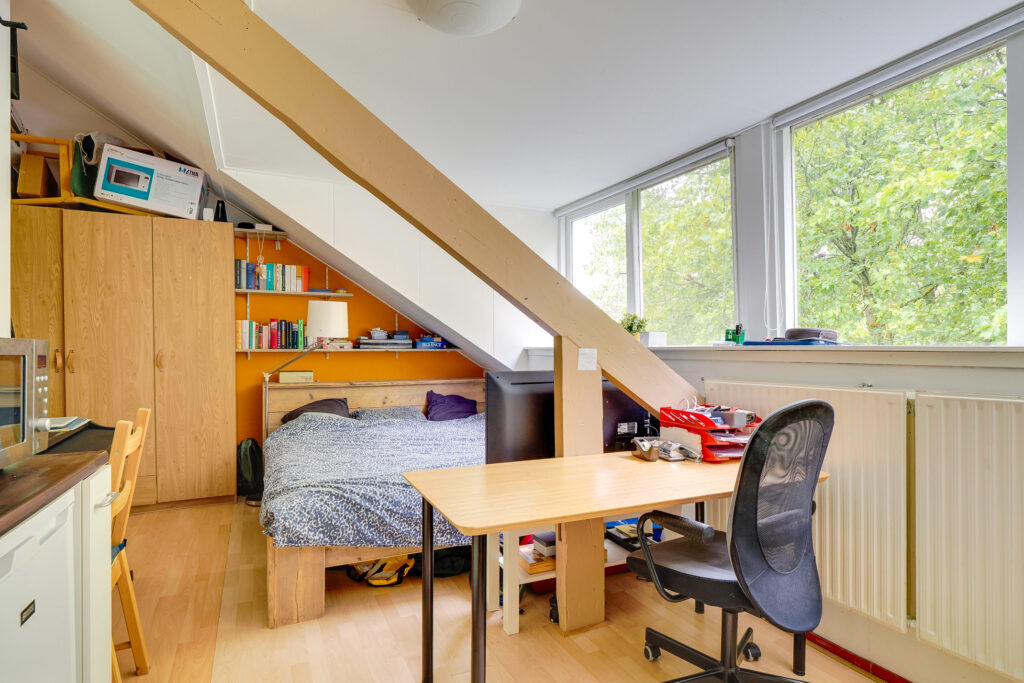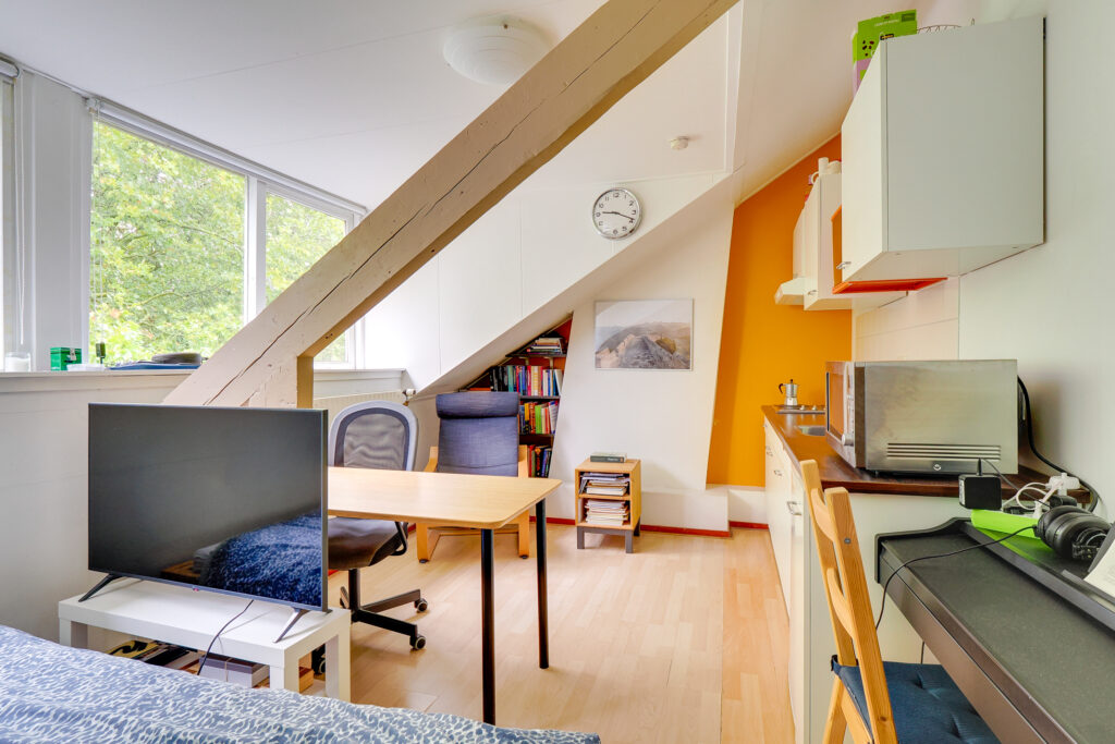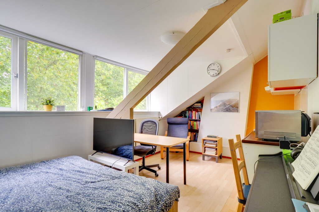 Op de bovenste verdieping gelegen sfeervolle studio 10 / lidmaatschap van een woonvereniging van 18m² met een dubbele dakkapel. Deze lichte studio maakt onderdeel uit van een karakteristiek en statig pand uit 1895 aan een flauwe bocht langs het water. De Zeeheldenbuurt is een populaire en een rustige en sfeervolle wijk in Utrecht Oost. Op loop- of fietsafstand liggen de Biltstraat, het Wilhelminapark en de Voorveldse Polder. Ook de bruisende binnenstad van Utrecht, met haar uitgebreide horeca-, winkel- en cultuuraanbod, ligt op steenworp afstand. In de directe omgeving zijn gezellige cafés, restaurants en zelfs een populaire ijssalon.