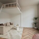 Bij binnenkomst word je meteen verrast door de hoogwaardige afwerking: een stijlvolle visgraatvloer, een moderne open keuken met inbouwapparatuur en een luxe badkamer met douche, wastafel en toilet. Dankzij de slimme indeling, de hoge plafonds en de grote ramen voelt de ruimte verrassend licht en ruim aan. Hierdoor was het dus ook mogelijk om een slaapvide te creëren. De ideale woonruimte voor starters, young professionals of als pied-à-terre in deze gewilde buurt!