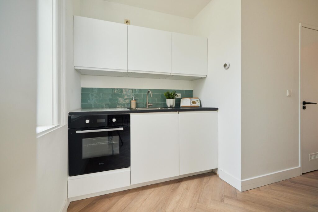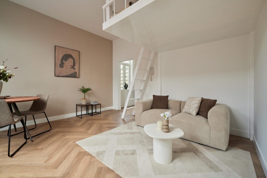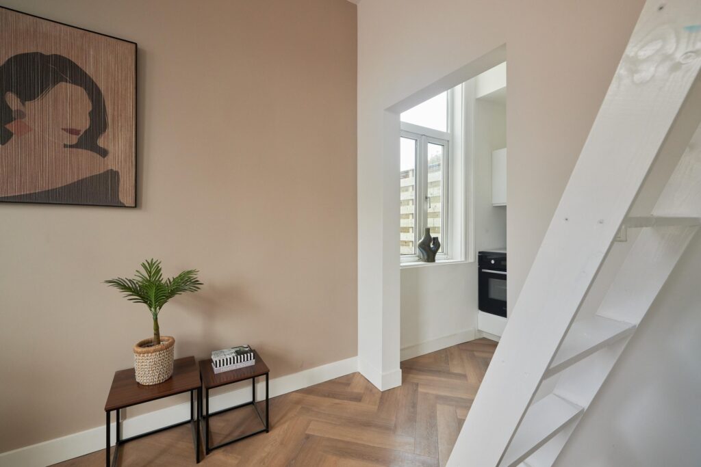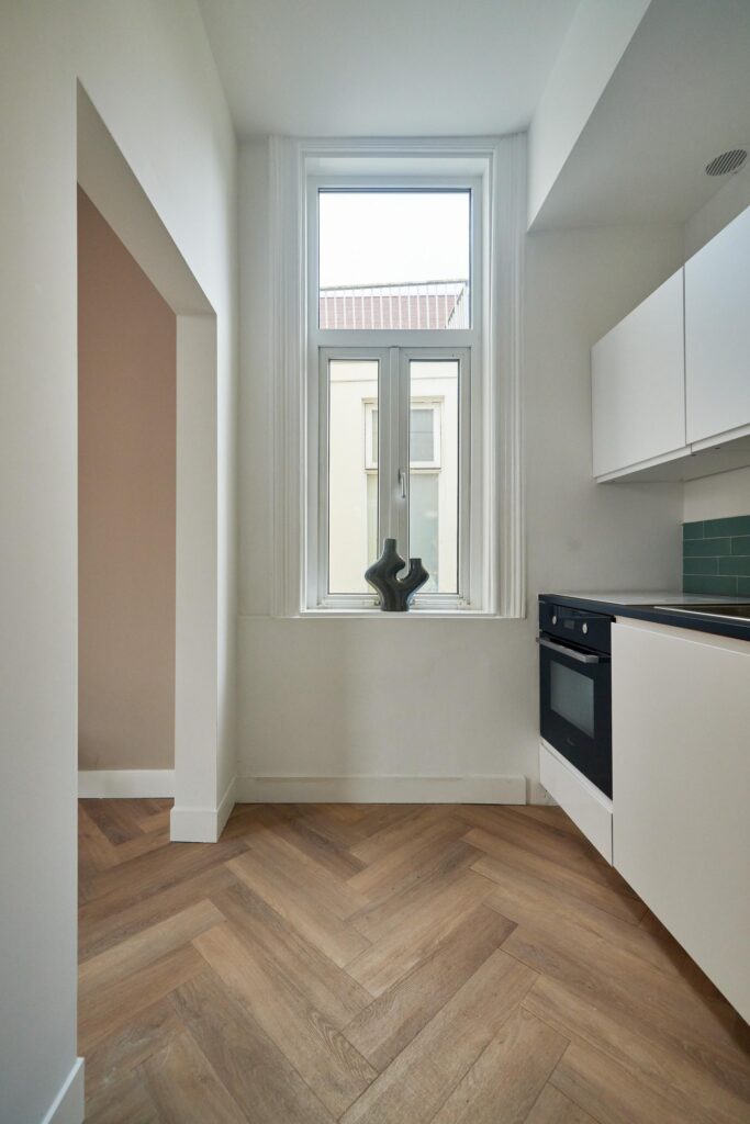 Bij binnenkomst word je meteen verrast door de hoogwaardige afwerking: een stijlvolle visgraatvloer, een moderne open keuken met inbouwapparatuur en een luxe badkamer met douche, wastafel en toilet. Dankzij de slimme indeling, de hoge plafonds en de grote ramen voelt de ruimte verrassend licht en ruim aan. Hierdoor was het dus ook mogelijk om een slaapvide te creëren. De ideale woonruimte voor starters, young professionals of als pied-à-terre in deze gewilde buurt!
