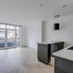 Eerste Verdieping; Entree, hal met inbouwkast met daarin ruimte voor de c.v. opstelling en meterkast. Toegang tot alle vertrekken, waaronder een royale living met open keuken. Er zijn twee binnenslaande deuren voor het Franse balkon. De keuken is gesitueerd in twee compartimenten en een kookeiland. De keuken is voorzien van diverse inbouwapparatuur en beschikt over praktisch veel opbergruimte. De slaapkamer bevindt zich aan de voorzijde en de badkamer is gelegen in het midden van het appartement. Deze badkamer is voorzien van fraai tegelwerk, een wastafelmeubel, een handdoekradiator, inloopdouche en zwevend toilet. Een wasmachine-aansluiting is hier ook te vinden en is strak weggewerkt binnen de muren.