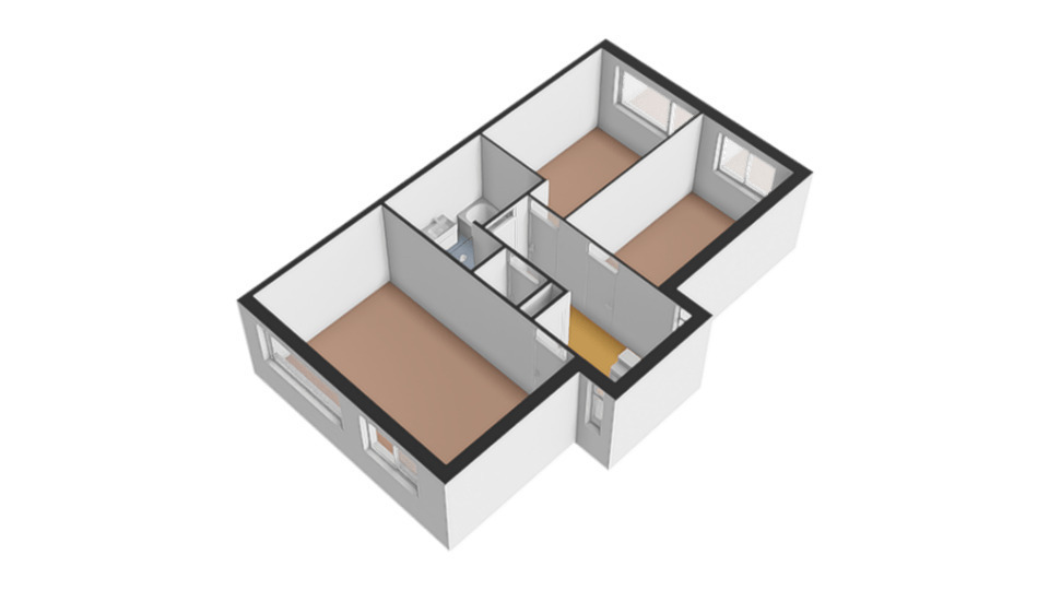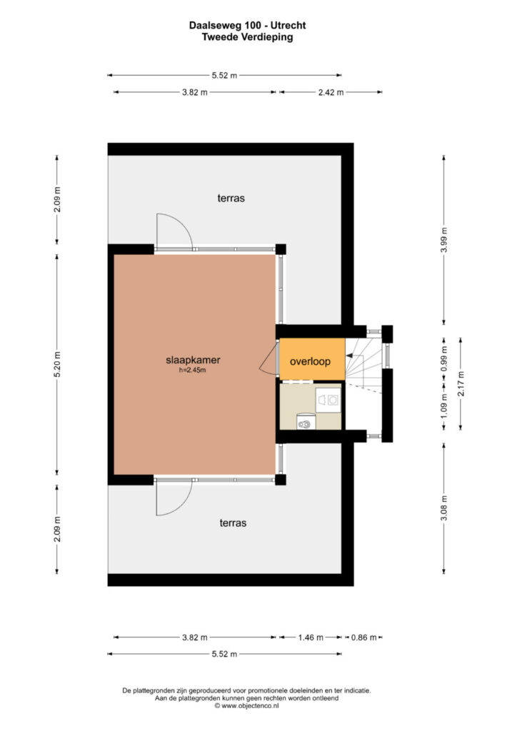 Tweede verdieping; Overloop met apart washok. Hier is ruimte voor de c.v. opstelling, mechanische ventilatie en een wasmachine-aansluiting. Deze bovenste verdieping beslaat de vijfde slaapkamer met aan weerzijde het dakterras.