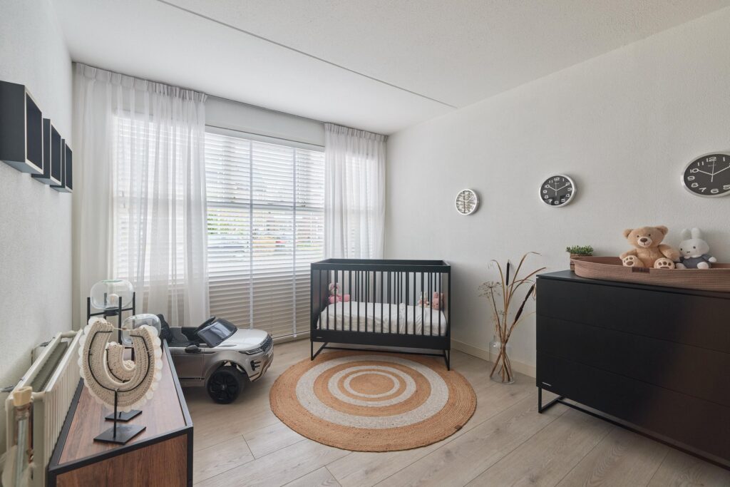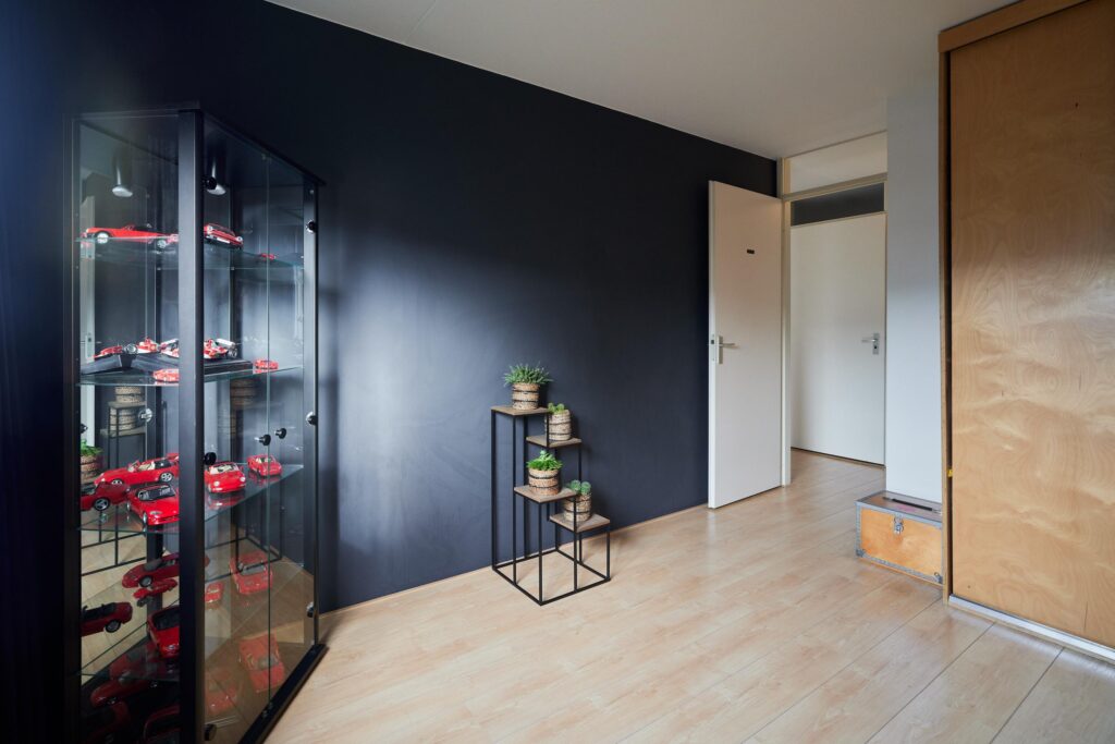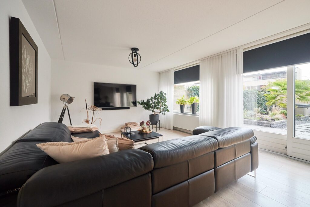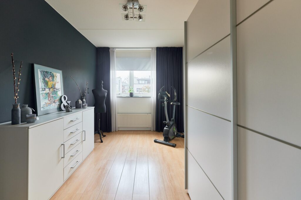 Begane Grond; Voortuin met oprit/parkeermogelijkheid voor twee auto’s en een gazon. Voordeur met luifel, entree, hal met meterkast en trapopgang met trapkast. Toegang tot alle vertrekken, waaronder een separaat toilet met fontein, een inbouwkast en doorloop naar de doorzon woonkamer. De woonkamer is gelegen over de gehele breedte en heeft een schuifpui naar het terras en de aanwezige achtertuin. Weer terug naar de hal, is rechts een deur te vinden naar de keuken. De keuken is gesitueerd in een hoekopstelling en is voorzien van diverse inbouwapparatuur. Vanuit de keuken is er een open doorloop naar de living. Links van de hal ligt de deur naar de ruime slaapkamer, welke voorzien is van een kastenwand met schuifdeuren.
