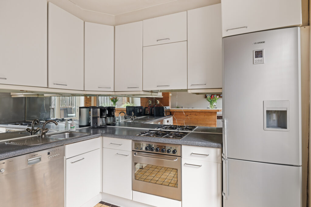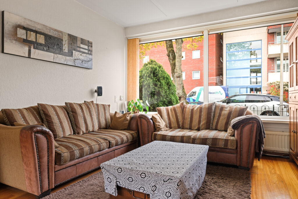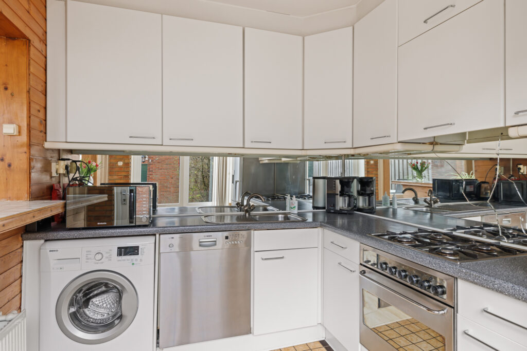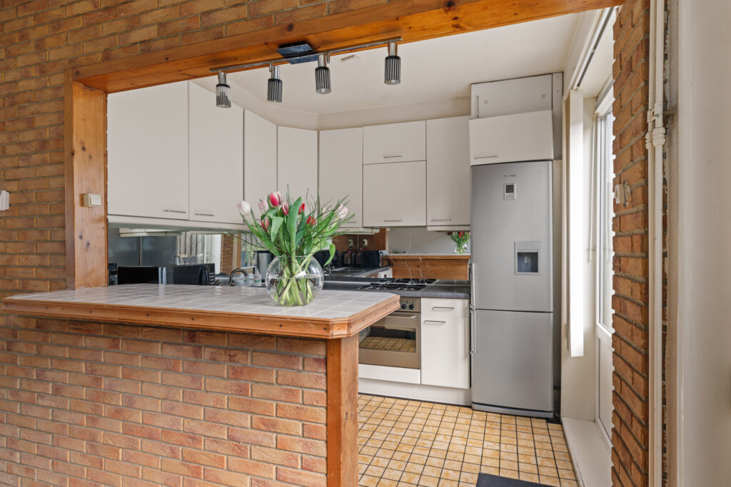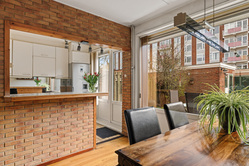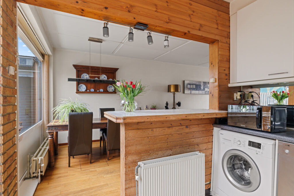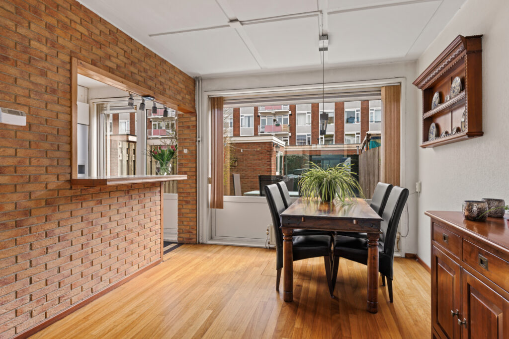 De woonkamer is ruim opgezet en profiteert van grote raampartijen, waardoor er veel daglicht binnenkomt. De aangrenzende keuken, met een barverbinding naar de living, bevindt zich aan de achterzijde en biedt direct toegang tot de tuin. De diepe achtertuin biedt volop ruimte om te genieten van het buitenleven, terwijl de voortuin zorgt voor een prettige afstand tot de straat. Daarnaast beschikt de woning over een externe berging, ideaal voor fietsen en extra opslag.