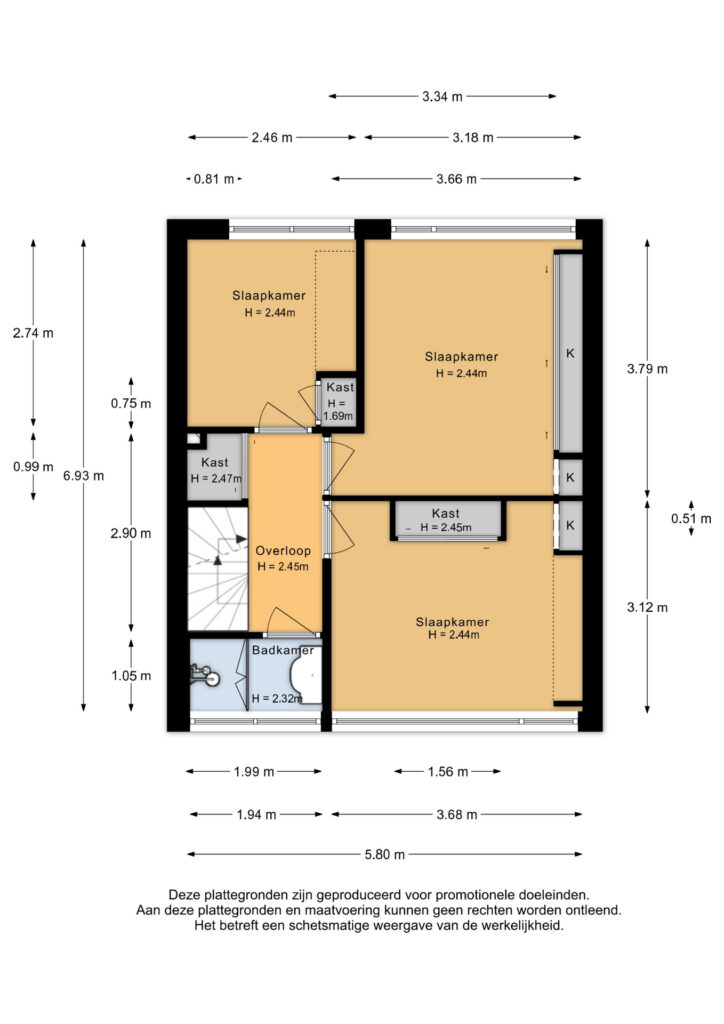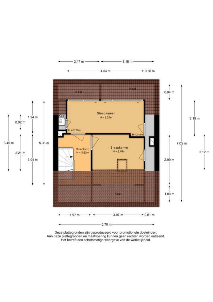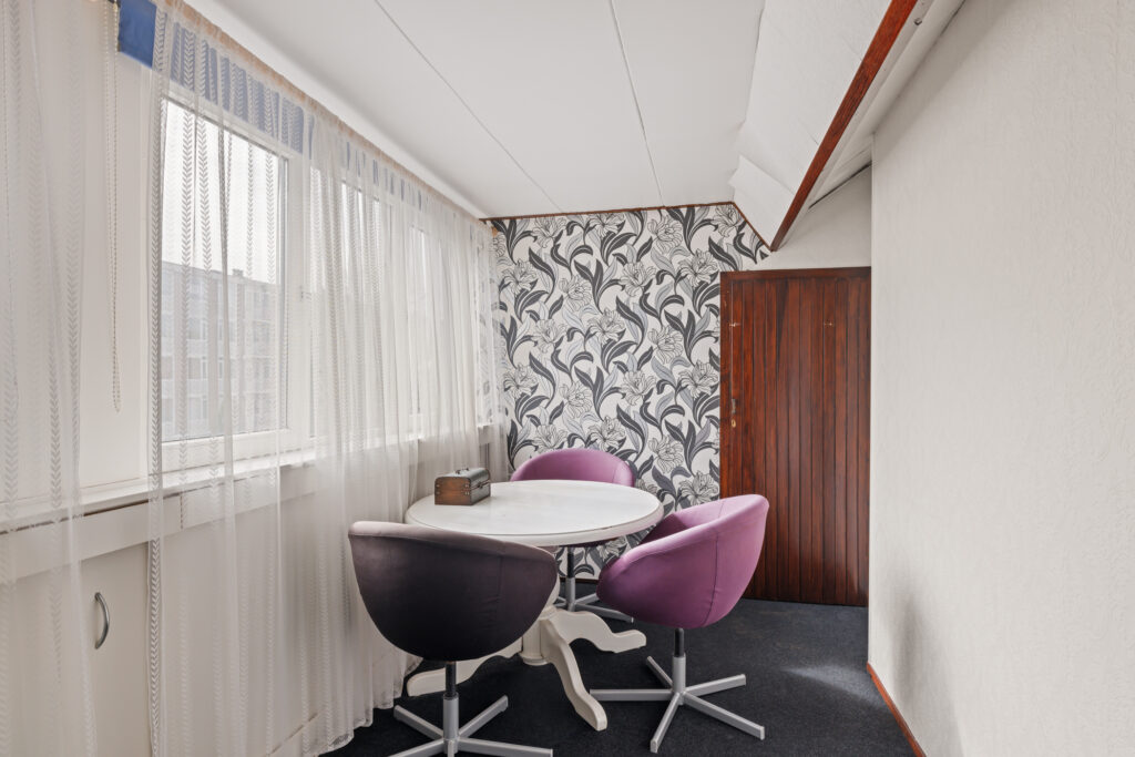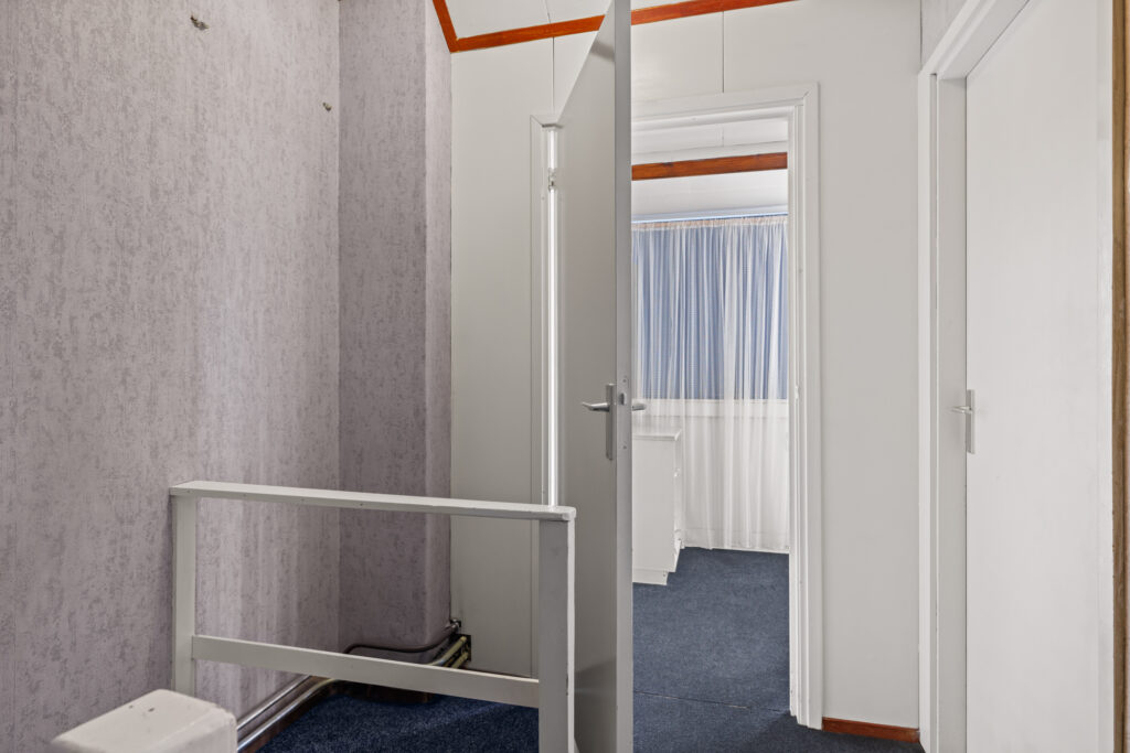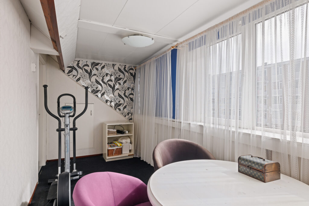 Tweede verdieping: Overloop met toegang tot extra slaapkamer(s). Deze verdieping biedt aanvullende ruimte die gebruikt kan worden als slaapkamer, werkruimte of hobbykamer en beschikt tevens over bergruimte onder de schuine kap.