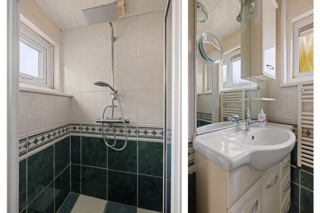 Eerste verdieping: Overloop met toegang tot meerdere slaapkamers. De slaapkamers zijn goed van formaat en voorzien van wandkasten en veel daglicht. De badkamer is functioneel ingericht en beschikt over een douche en wastafel.