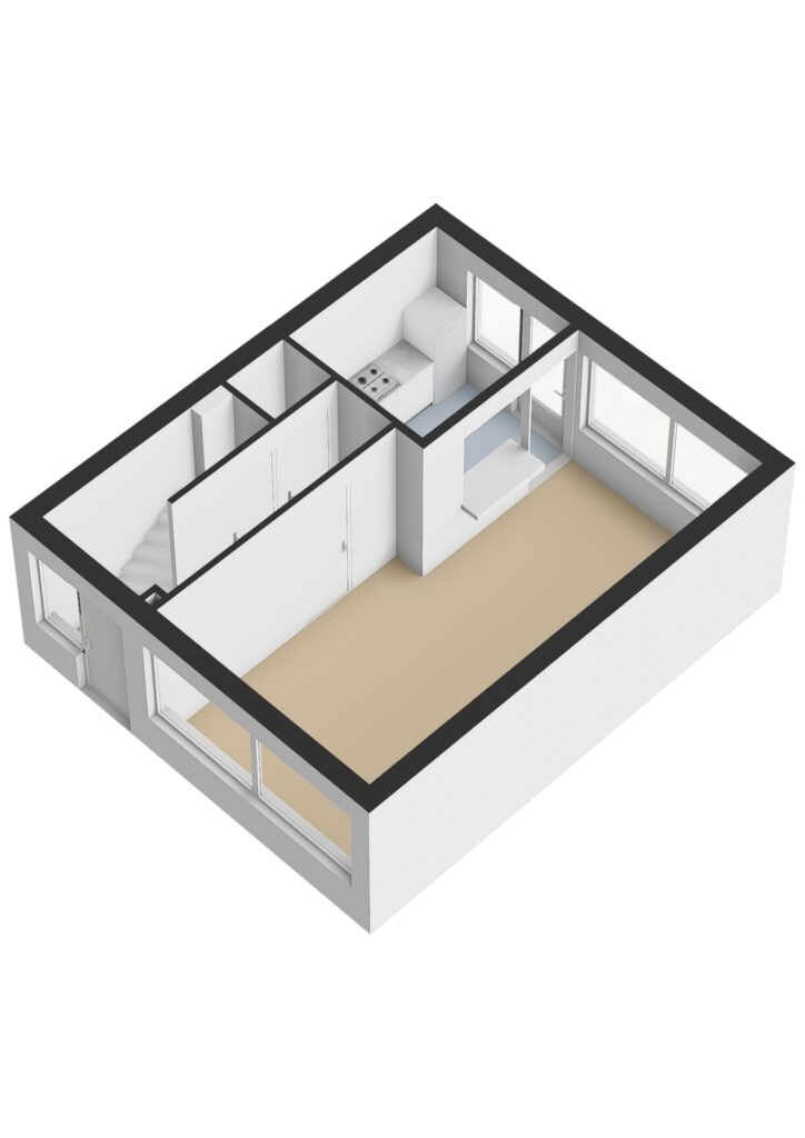 Begane grond: Entree via de voortuin met toegang tot de hal. In de hal bevinden zich de meterkast, het toilet en de trapopgang naar de eerste verdieping. Vanuit de hal bereikt u de woonkamer, welke ruim en licht is door de grote raampartijen aan zowel de voor- als achterzijde. Aan de achterzijde bevindt zich de keuken, uitgevoerd als een eenvoudige keukenopstelling en voorzien van diverse apparatuur zoals een kookplaat, oven en spoelbak. De keuken heeft een wasmachine-aansluiting en een gezellige bar naar het woongedeelte. Vanuit de keuken is er direct toegang tot de achtertuin.