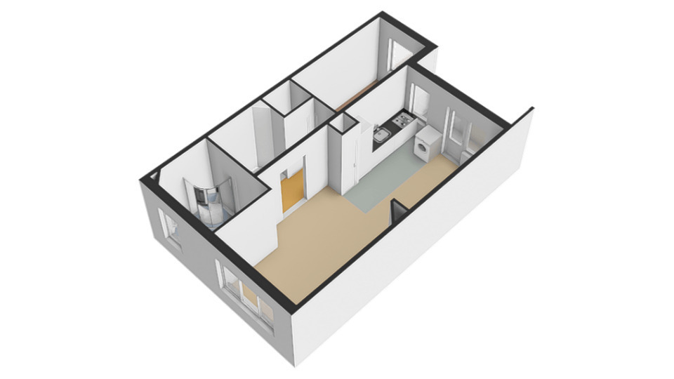 Eerste verdieping: overloop met separaat toilet en toegang tot de doorzonwoonkamer. De open keuken is voorzien van diverse inbouwapparatuur, een inbouwkast en een wasmachineaansluiting met wandplank en magnetron. Vanuit de overloop is de badkamer bereikbaar, uitgerust met een royaal ligbad, douche en wastafel. Aan de andere zijde van de overloop ligt de slaapkamer. Het balkon is toegankelijk via de woonkamer en ligt op het zuidwesten.