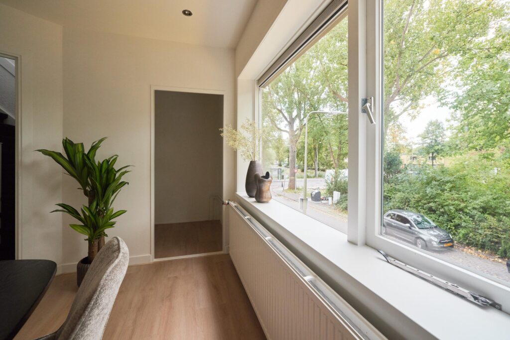 Op de hoek van de Julianaweg en de Liesbosweg gelegen vierkamer bovenwoning van 101,4 m² met drie slaapkamers, een aparte wasruimte, royale zolder, loggia en balkon. Deze fraaie woning uit 1936 is volledig gerenoveerd en voorzien van een moderne afwerking. Door de hoekligging valt veel natuurlijk licht naar binnen en is er uitzicht op de brede, groene straat. Naast de keuken is het goed vertoeven in de loggia: heerlijk natafelen in de avondzon of ontbijten met het opkomende zonnetje. De woning biedt daarnaast veel praktische opbergruimte, zoals inbouwkasten in de masterbedroom en een volledige zolderverdieping.