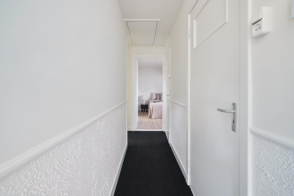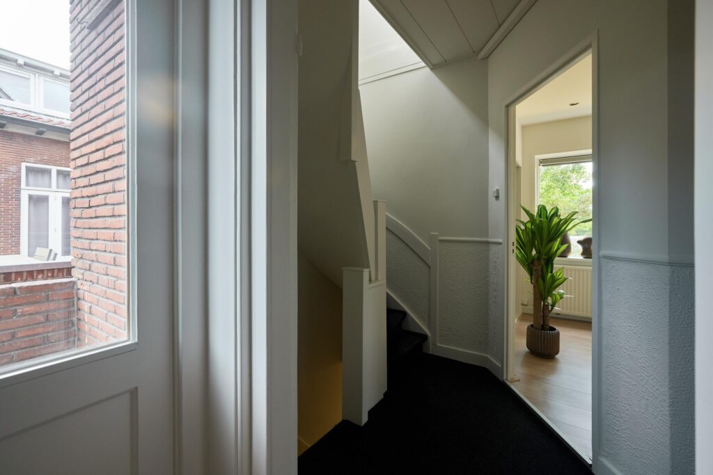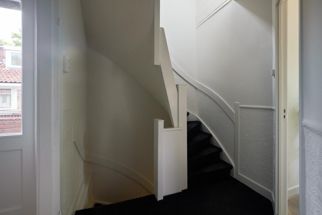Begane grond: Entree, hal met meterkast en trapopgang naar de bovenwoning.