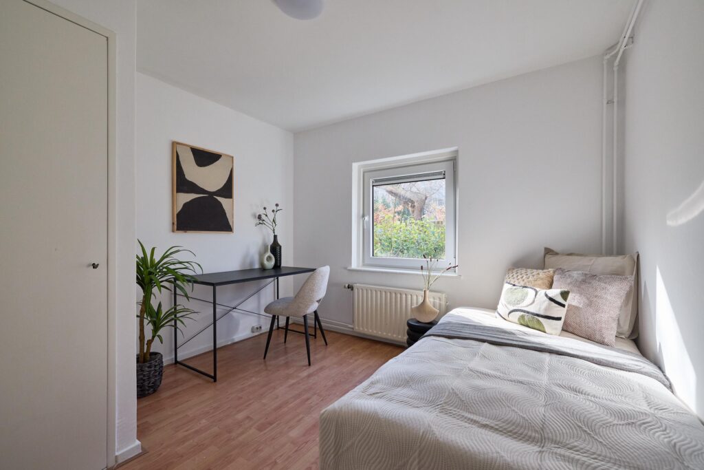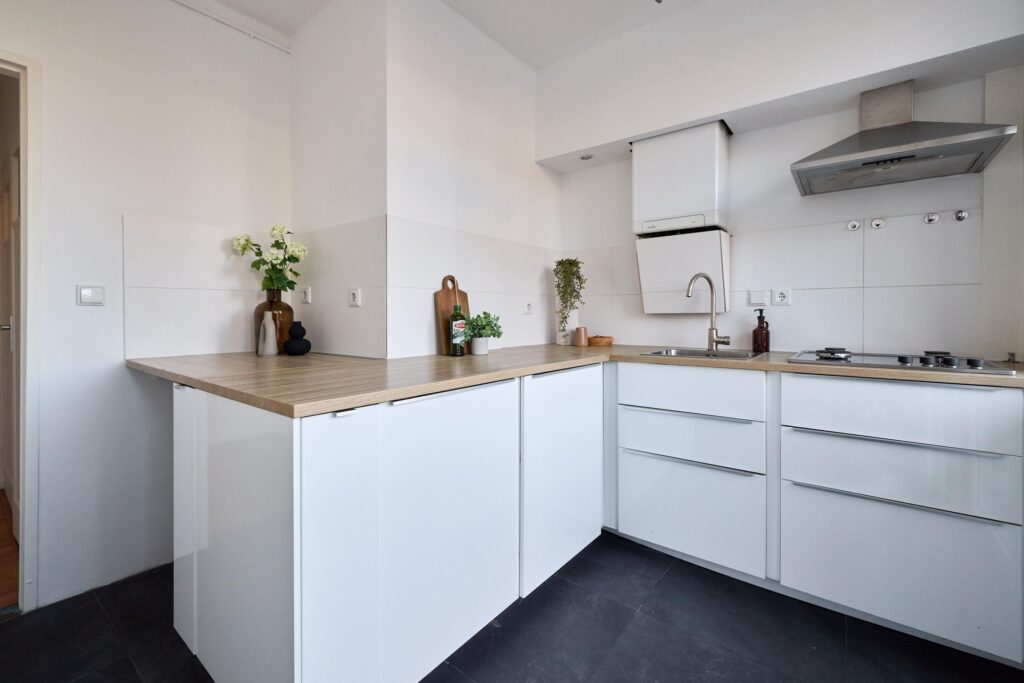 Wat direct opvalt is de fijne lichtinval. De keuken en slaapkamer beschikken over ramen op het noordoosten, waardoor je hier al vroeg op de dag geniet van prettig ochtendzonlicht. De woning is voorzien van een moderne keuken, een nette badkamer en een mooie doorgelegde laminaatvloer.