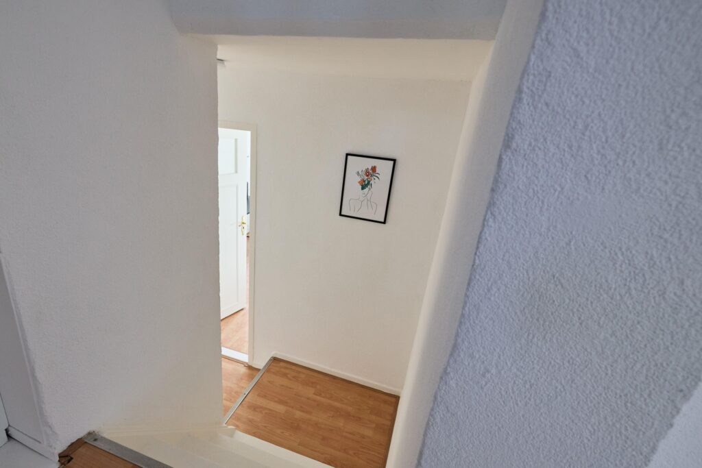 Via enkele treden in de hal bereik je een overloop met een inbouwkastenwand. Vanuit hier is er toegang tot twee slaapkamers, beide voorzien van een inbouwkast.