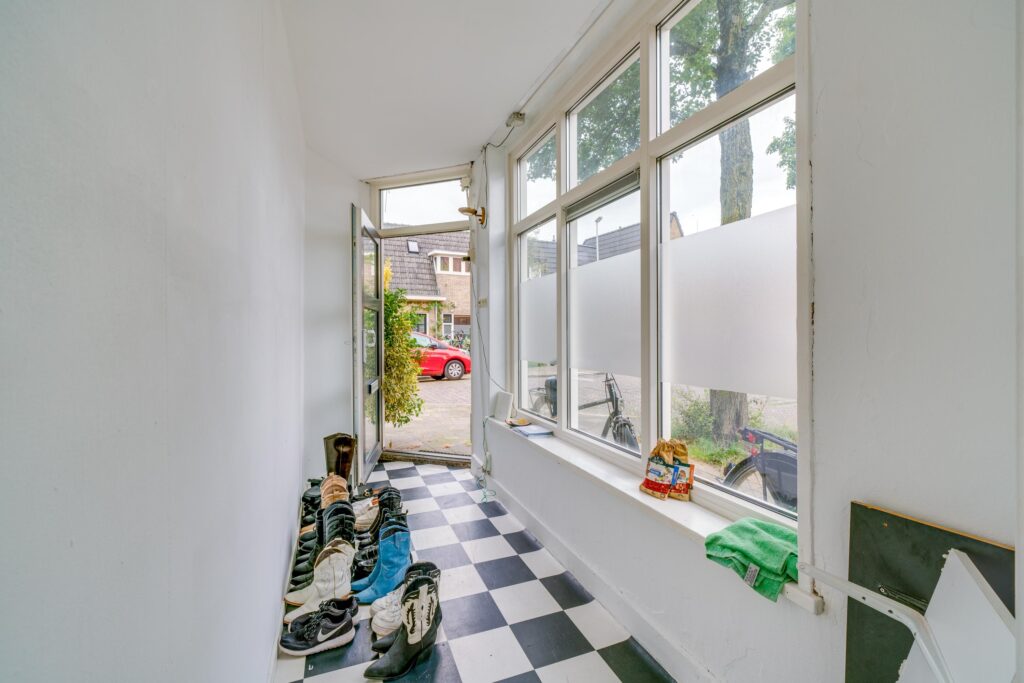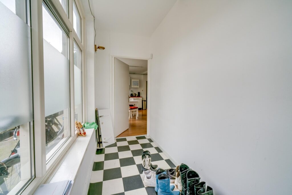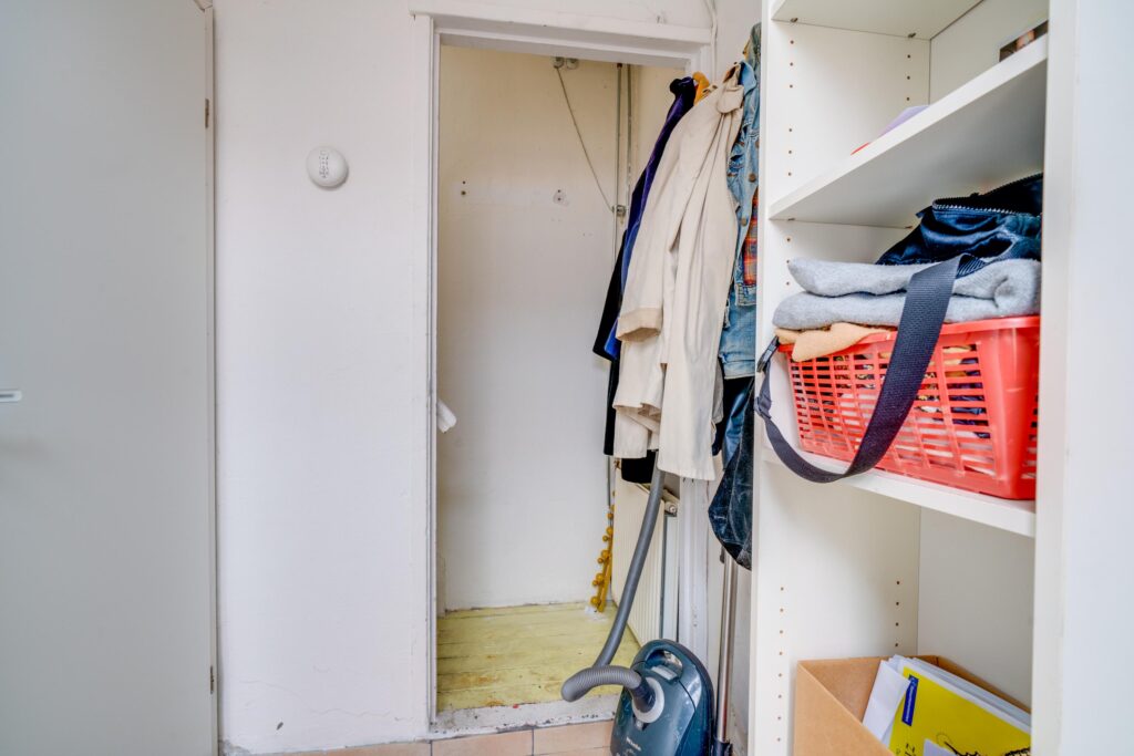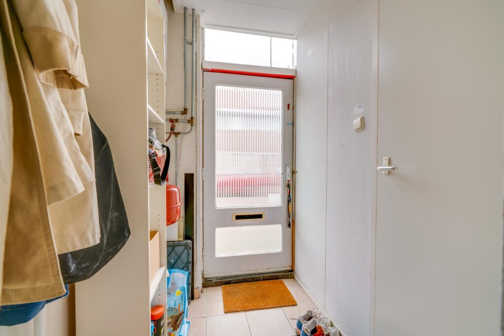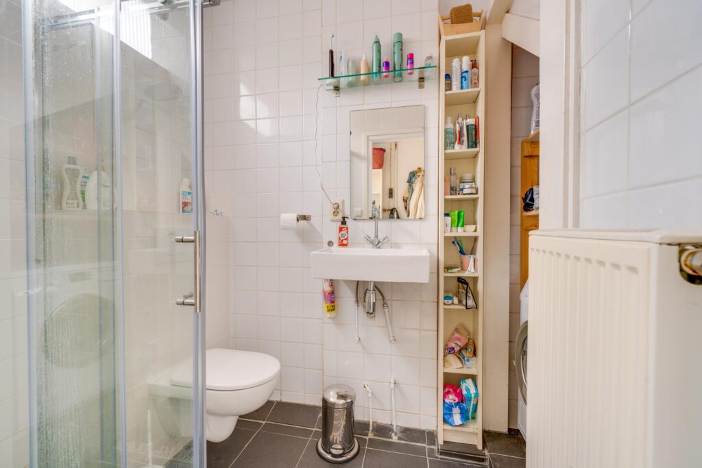 Entree, hal met ruimte voor de c.v. opstelling en trapopgang. De hal biedt toegang tot een badkamer welke voorzien is van een douche, toilet en een ruimte voor de wasmachine.