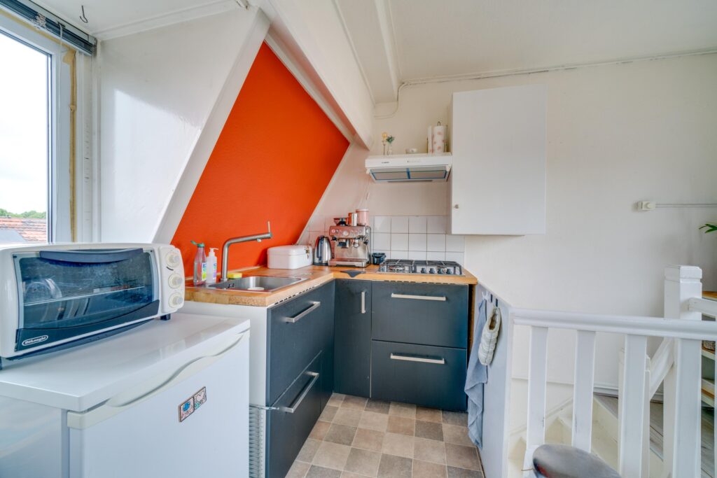 Op deze bovenste verdieping is de living gesitueerd met een open keuken welke voorzien is van diverse inbouwapparatuur en een dakkapel.