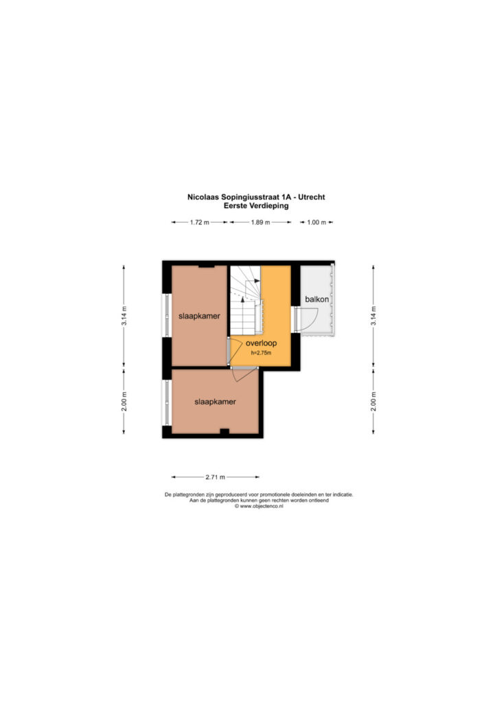 Overloop met toegang tot het balkon welke gelegen is op het zuidoosten. Er zijn twee slaapkamers.
