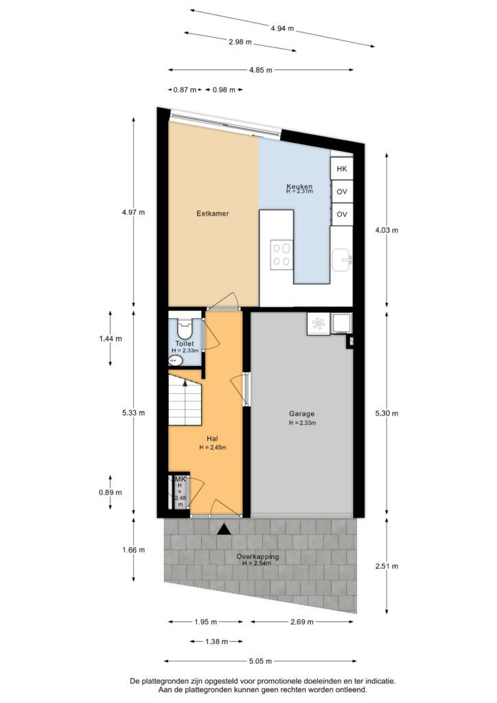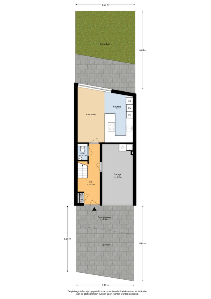 • Achtertuin loopt tot de verhoging ca. 350cm bij 523cm, daarboven is gemeente tuin (dit wordt ook onderhouden vanuit de gemeente)