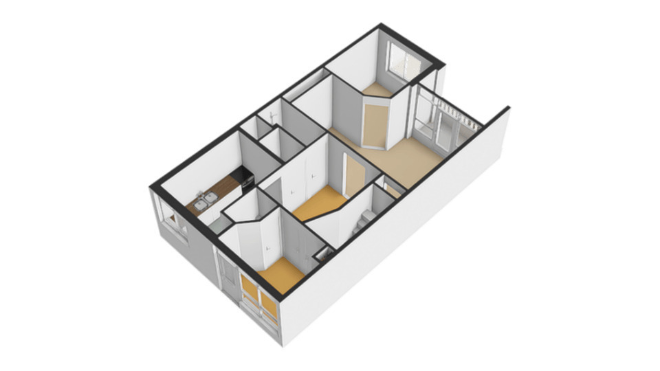 De keuken is voorzien van diverse apparatuur en grenst aan de woonkamer, die beschikt over een balkon en een extra (bij)kamer — ideaal als eetkamer, werkruimte of hobbykamer.